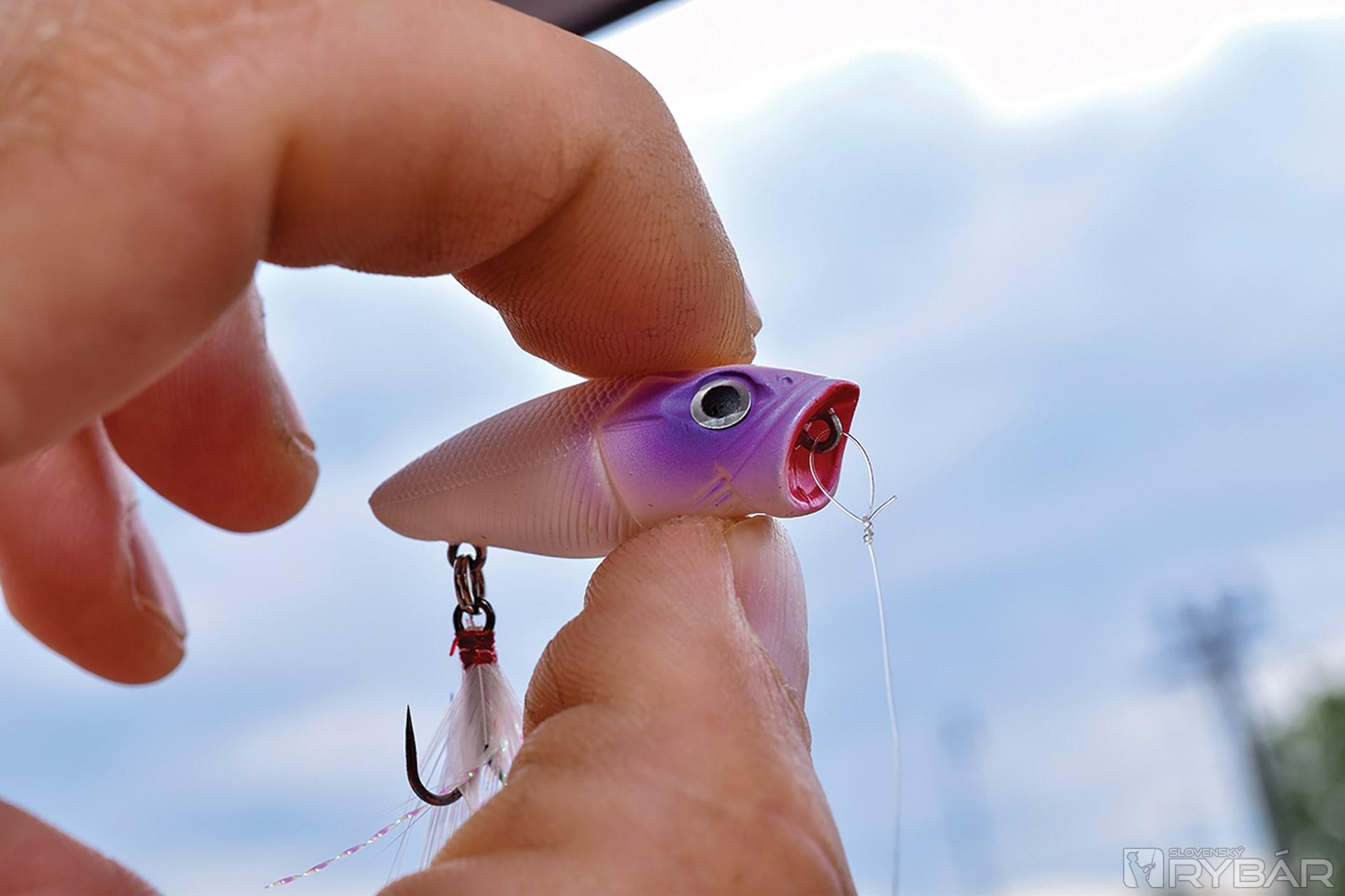 Zvolím preto miniatúrny pop, ktorý pracuje na hladine alebo len malý kúsoček pod ňou. Je to trochu hlučná nástraha a navyše má v tele ešte guľôčku, ale aspoň uvidím, ako bude táto ryba, o ktorej viem, na nástrahu reagovať.