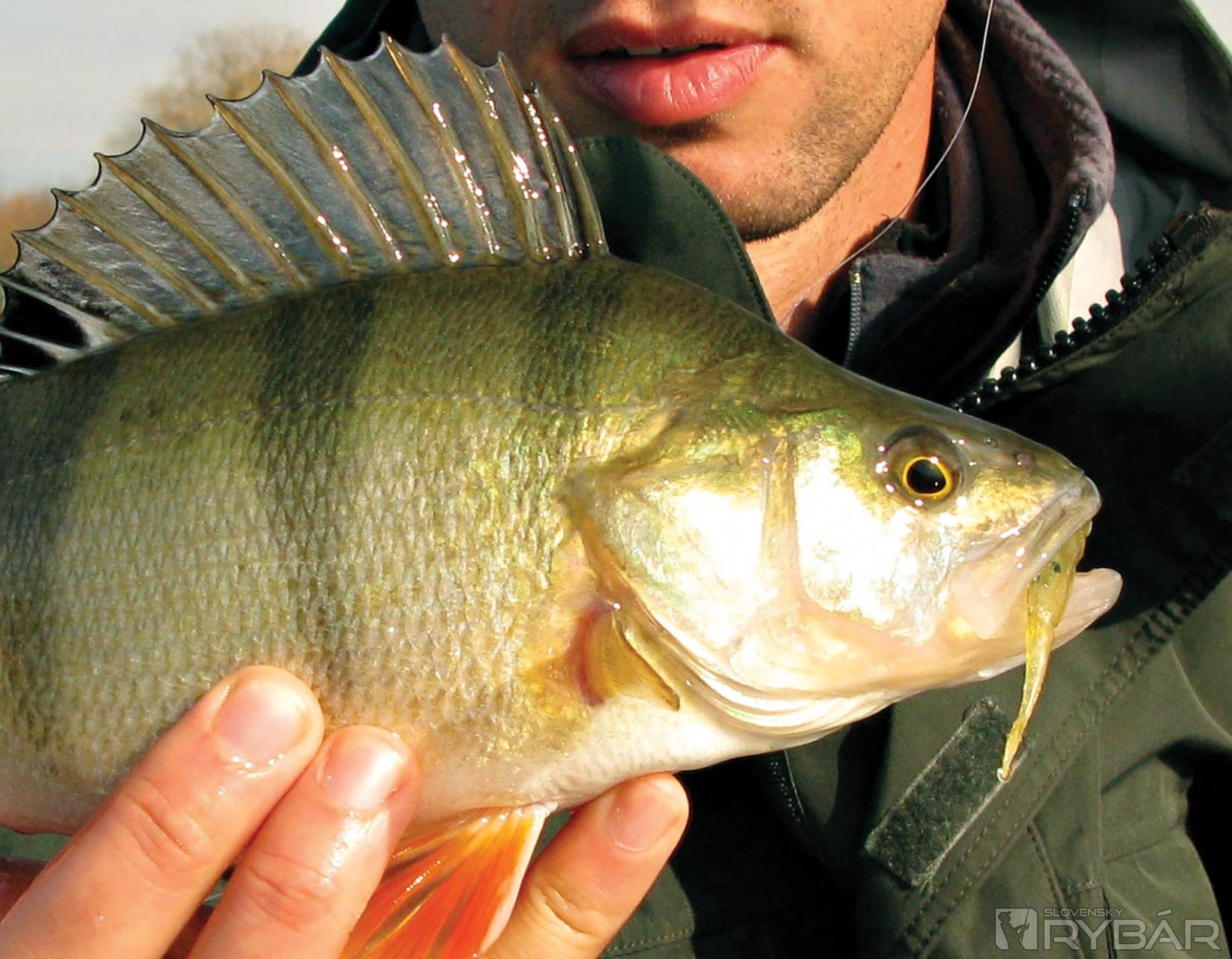 Ostriež ulovený na smáčika pomocou split-shot montáže.