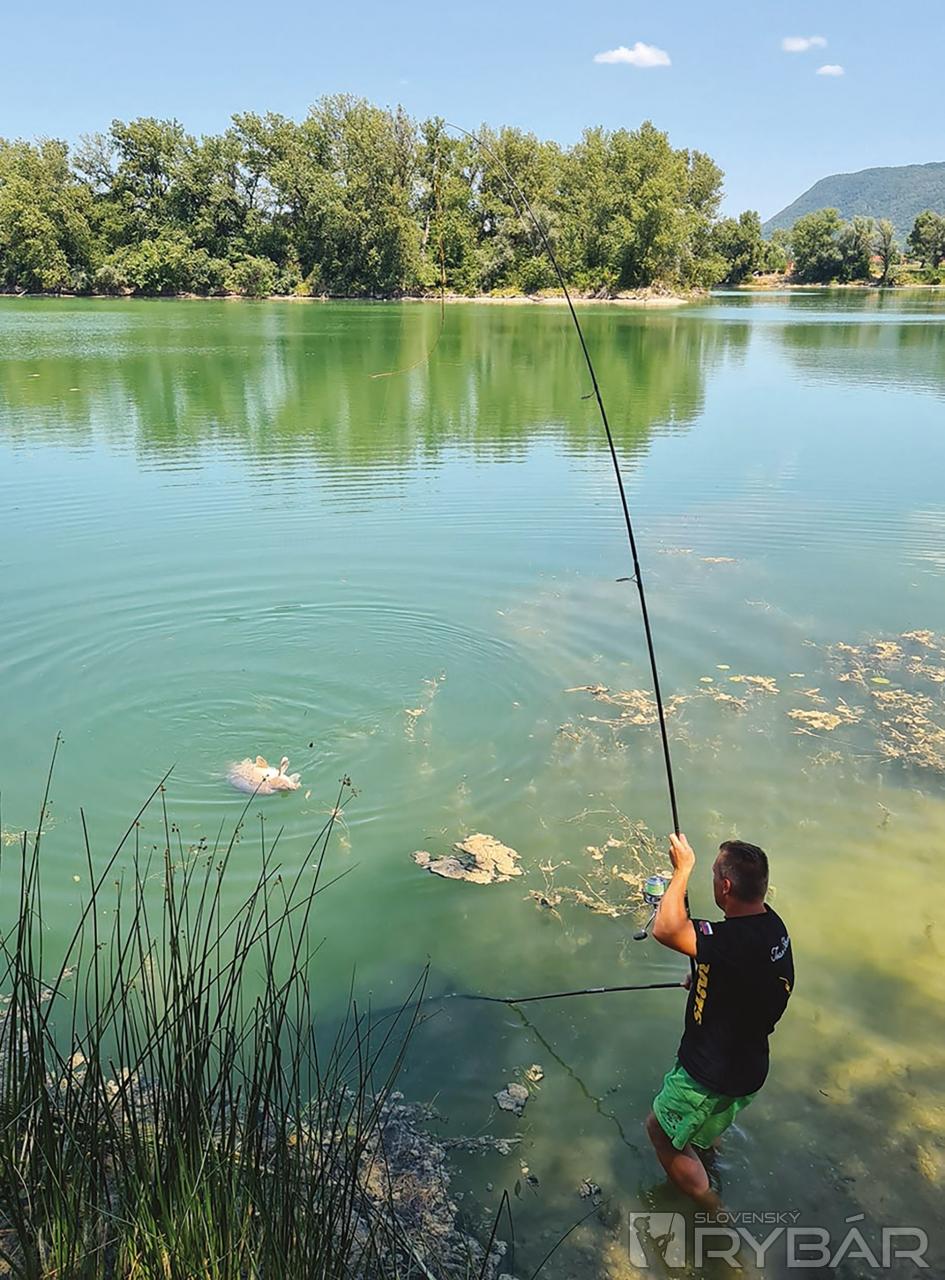 Navečer som sa dočkal záberu aj ja a zdolal som si ešte rybu tesne nad 18 kg. Začali sme sa baliť s tým, že budeme loviť do polnoci, dokedy nám platia povolenky, potom si na pár hodín zdriemneme a skoro ráno vyrazíme, aby sme sa vyhli dovolenkovým zápcham na diaľnici. Pred polnocou som mal posledný záber a podľa zdolávania to vyzeralo, že sa rozlúčim ešte s poriadnym kapriskom. Po viac ako polhodinovom súboji som v lúči čelovky zbadal kapra do 15 kg, ktorému sa zrejme počas záberu vytrhol háčik z papule a zapichol sa mu do stredu tela pod chrbtovú plutvu. Preto taká nádejná zdolávačka, po ktorej prišlo následne menšie sklamanie.