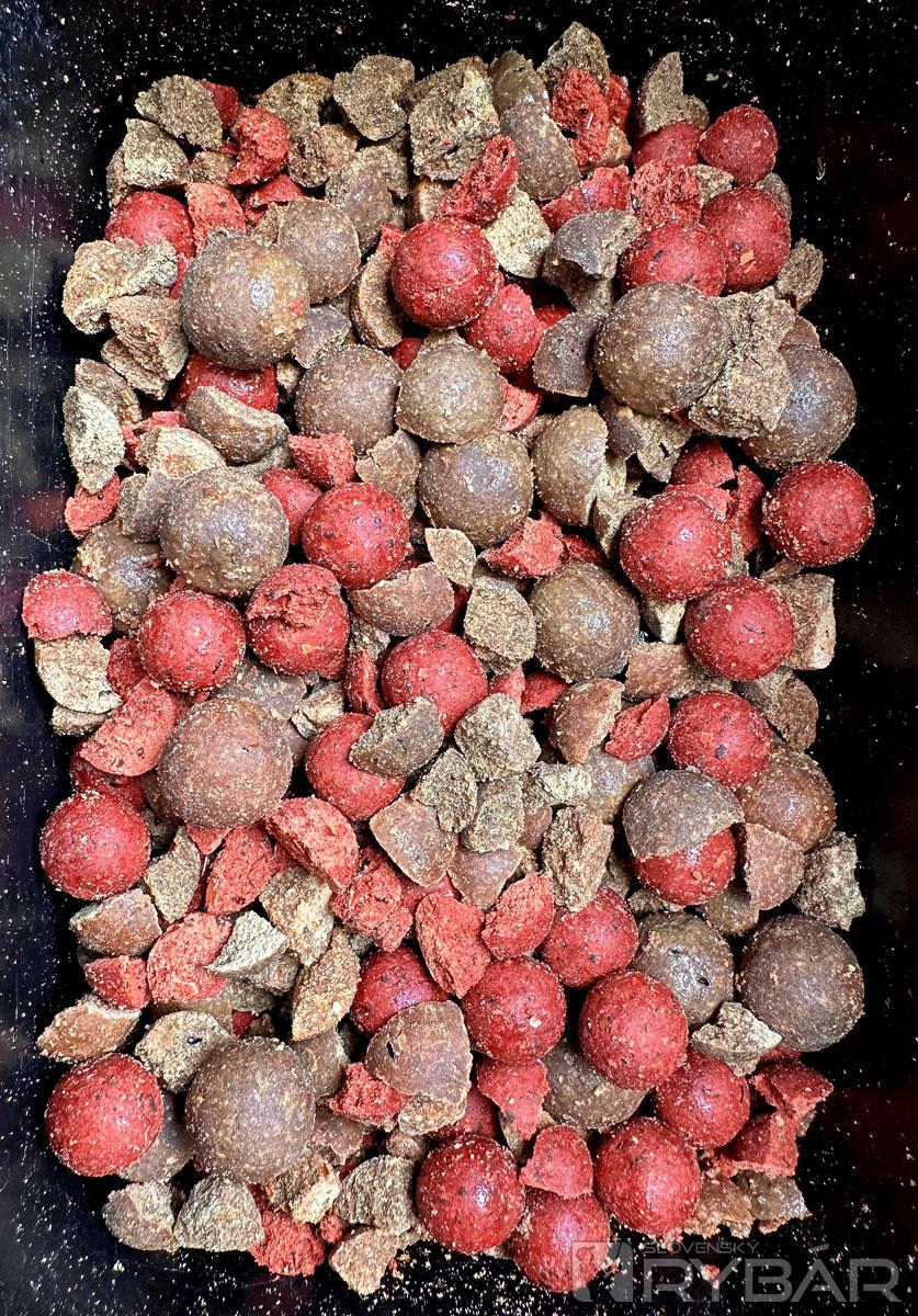 Našiel som pekné hrany, kde som sa rozhodol chytať a tiež jeden väčší ostrovček, ktorý sa nachádzal v hĺbke 15 m. Po dôkladnom zmapovaní dna som pozavážal udice na rôzne hĺbky a miesta vo vode. S masívnym kŕmením si tu netreba robiť starosti. Na tejto vode sa kŕmi málo a bodovo. Na kŕmenie som používal varený partikel a mix guliek Big B a Chilli Squid, ktoré som rozdrvil na rôzne kúsky drvičkou na boilies. Na dno som posielal PVA pančuchu, ktorá bola naplnená malými peletkami a rozdrveným boilies. Pod háčik som našil dve umelé kukuričky, ktoré mali docieliť rýchly kontakt s rybou. Na ďalšiu z udíc som dával Ronnie nadväzec s Ronnie žltou 14 mm popkou, ktorá je extra plávajúca a krásne svieti v hĺbke. A mohol sa začať boj s časom...