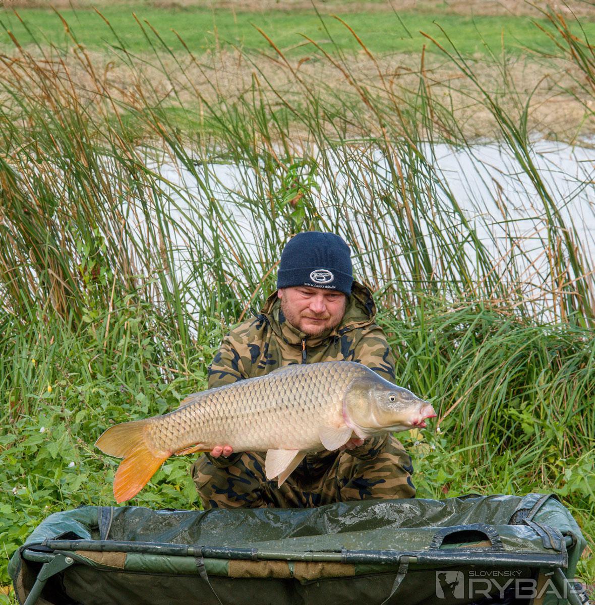 Zdolávačka trvala približne 15 minút a skončilo to tak, že aj v druhom podberáku sa ocitol pekný kapor. Vybral som s podberákom prvý úlovok, ktorým bol kapor s hmotnosťou 10,20 kg. Spravil som pár fotiek, dezinfikoval som rybe malú ranku po vpichu háčika a pustil ju na slobodu. Druhého kapra som tiež vybral s podberákom, odfotil, odmeral, dezinfikoval, pustil na slobodu. Ten druhý kapor vážil 9,30 kg. Parádny začiatok rybačky, pomyslel som si. Ak už nechytím žiadnu inú rybu, tak mi to nebude ani prekážať, veď mám dve pekné ryby hneď zo začiatku rybačky v takomto daždivom, veternom počasí.