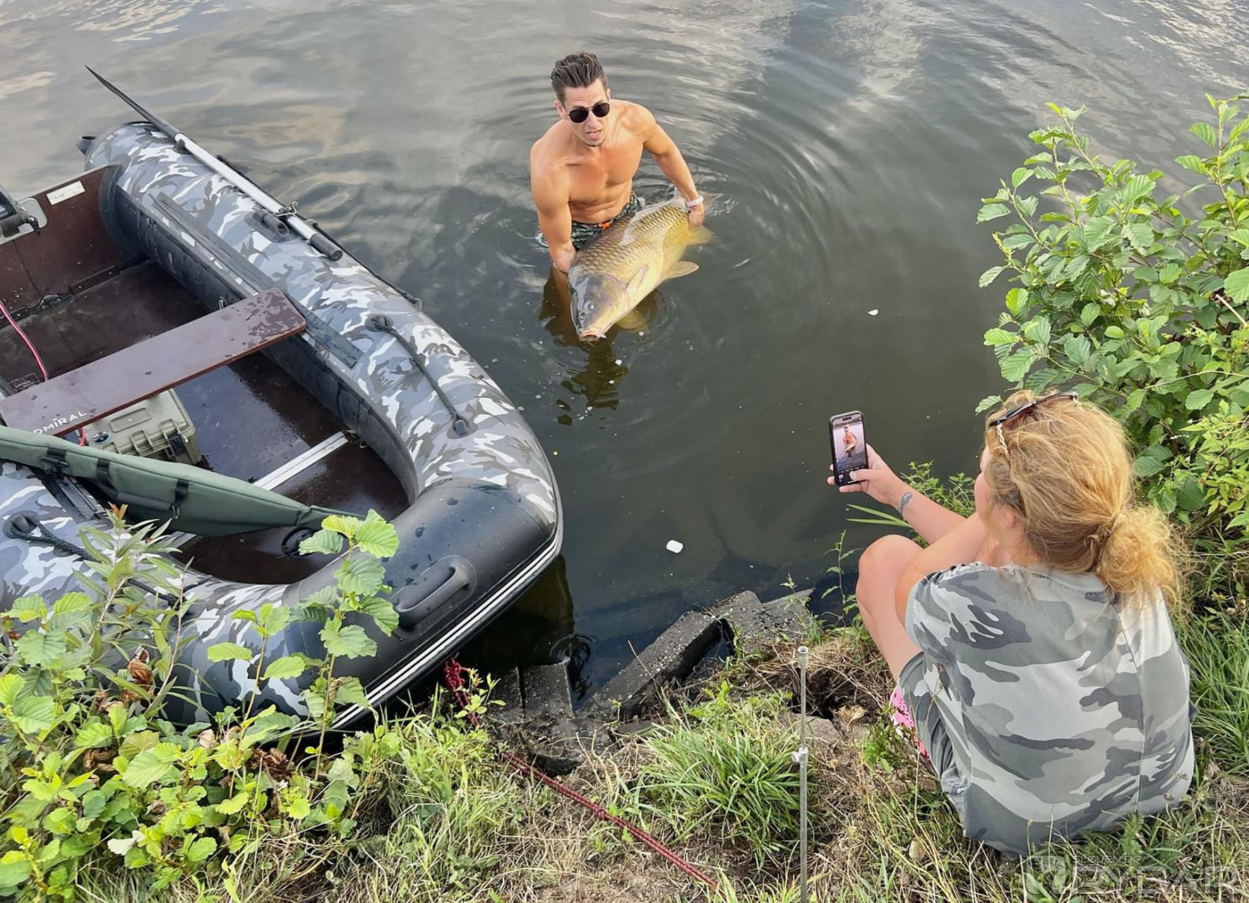 Prvý bol najskôr agresívny, potom povolil a výsledkom bol sumec s mierou 80 cm. Druhý záber bol však zaujímavejší – najprudší a najsilnejší, aký som mal od začiatku tejto rybačky. Trhol som prútom a napriek silnému vetru som nasadol na čln a vydal sa za rybou. Opäť približne 100 metrov plavby a potom samotné zdolávanie... Na konci však nečakal žiadny malý a už vôbec nie lenivý kapor.