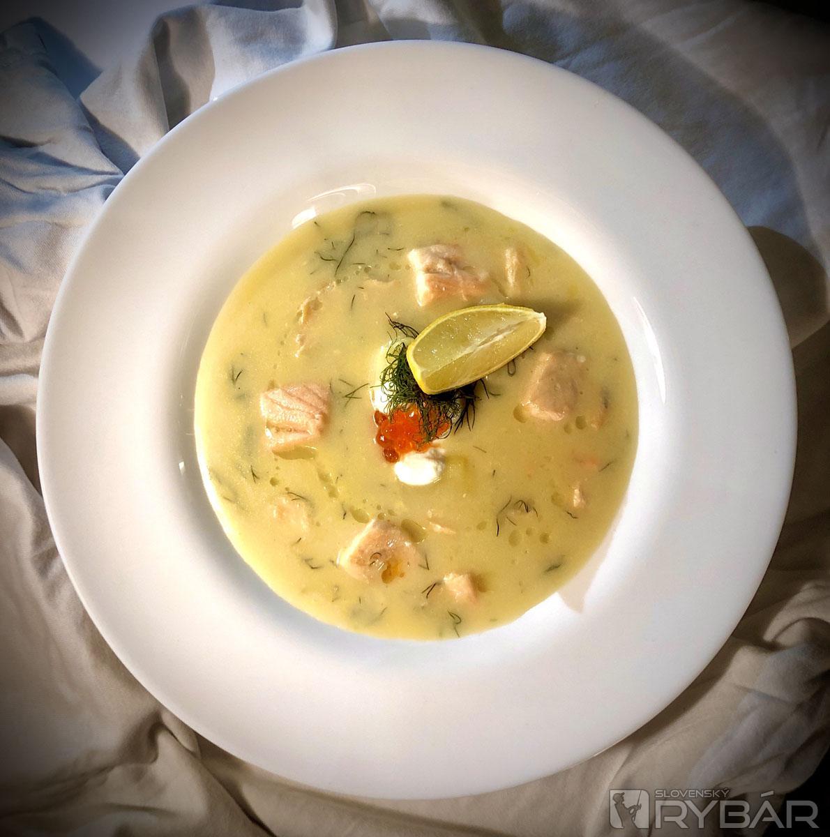 2. Lososa nakrájame na drobné kúsky a pridáme do polievky spolu s mliekom. Prilejeme citrónovú šťavu a nastrúhame citrónovú kôru. Pridáme smotanu, kôpor a dochutíme soľou a korením. Nakoniec zahustíme kukuričným škrobom.