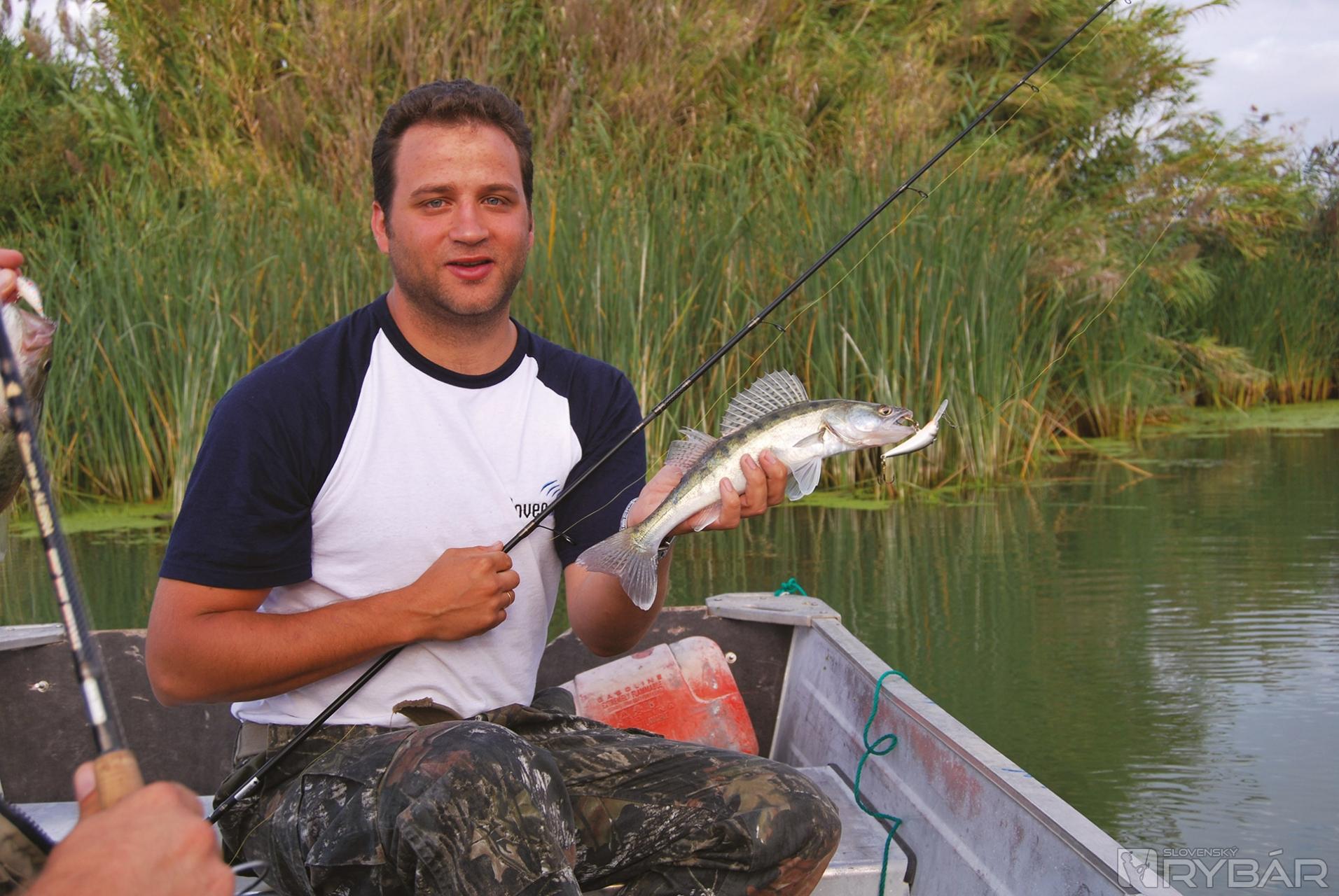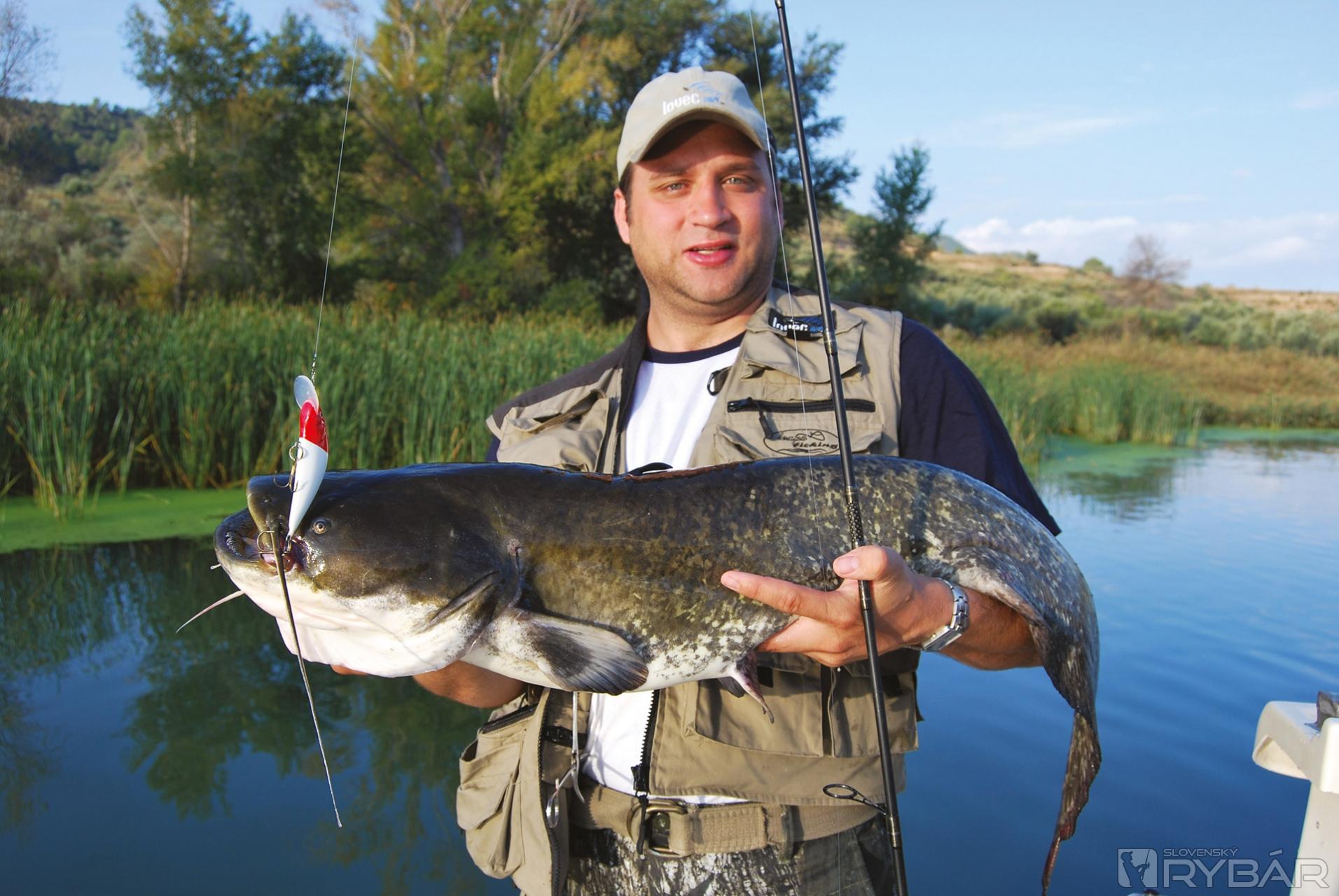No nástojčivé zvonenie rolničky ma stavia do pozoru. Zasekávam, podávam udicu Ľudovi a ten s prehľadom zdoláva svojho prvého sumca. Meter desať nie je žiadna víťazná miera, ale je prvý. Nebudem náš rybársky výlet opisovať chronologicky, ale podľa druhu lovených rýb. Takže keď už sme pri sumcoch, ďalšieho ulovil Sebastian na prívlač a tiež nepatrí do kategórie - titulná strana.