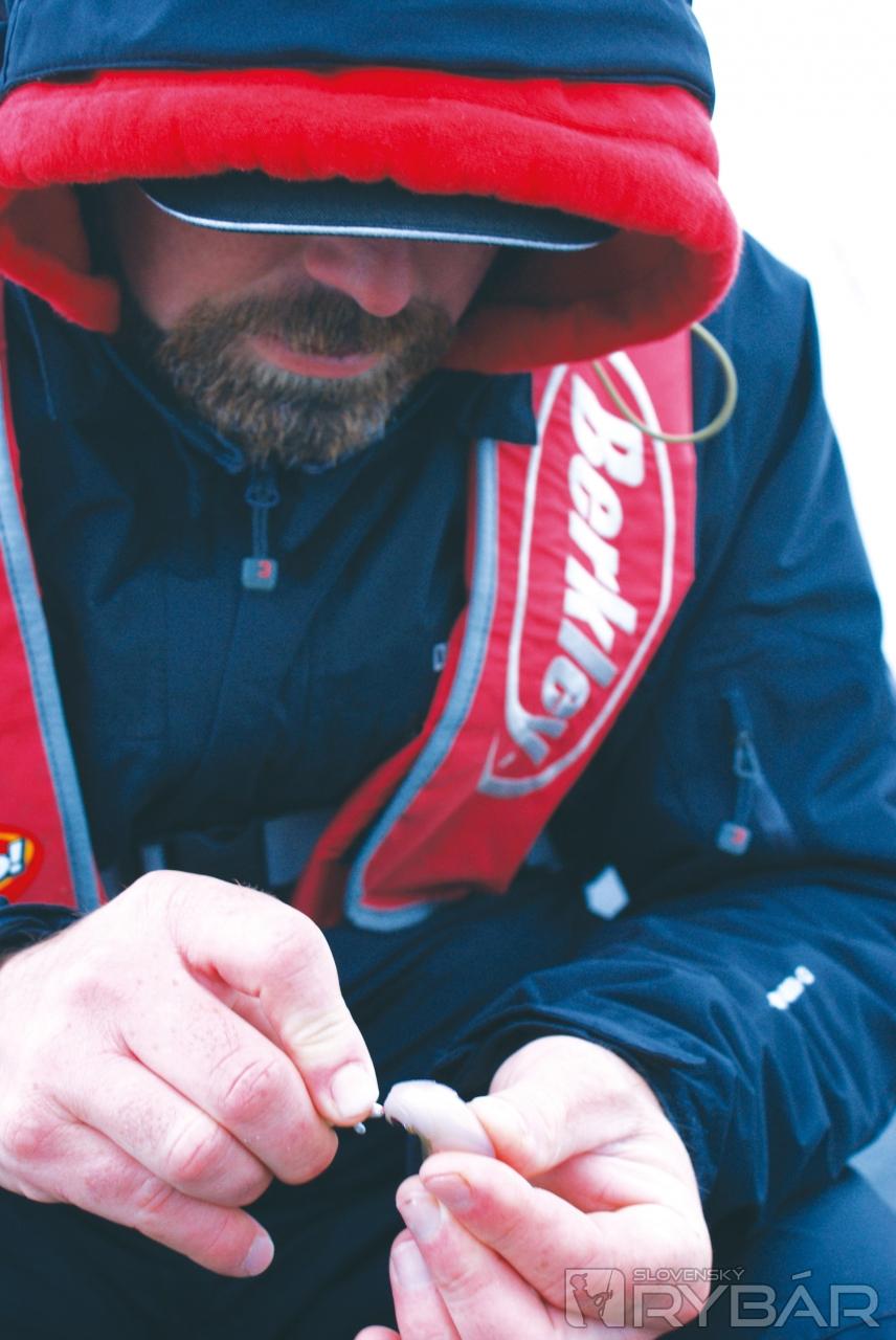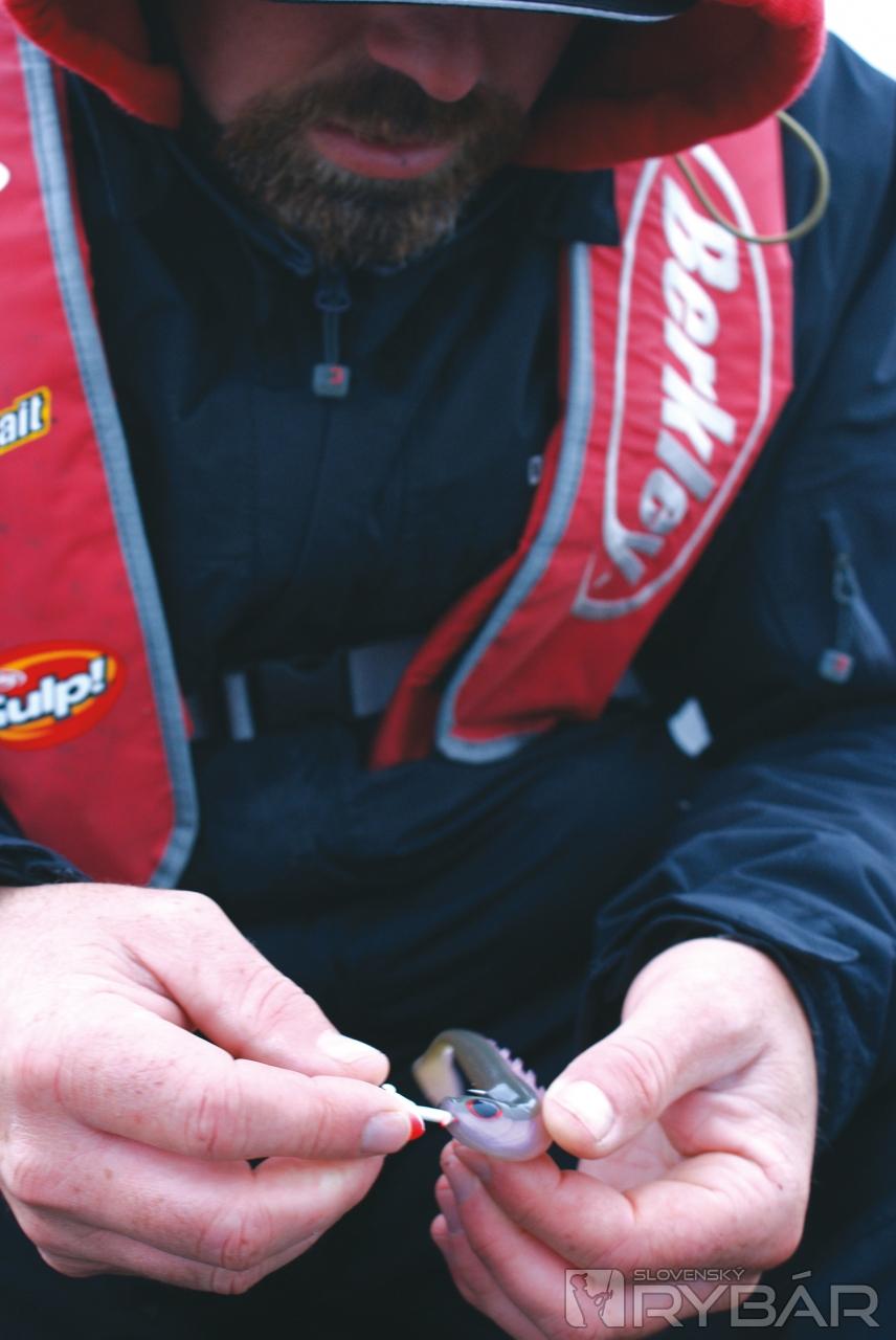 Francúzi vsadili na novinky v podobe mäkkých nástrah Gulp Alive a na záber veru nečakali dlho. Sylvain už onedlho vyťahoval pekného zubáča do 60 cm. Sústredili sa prevažne na bielu a žiarivú zelenú farbu.