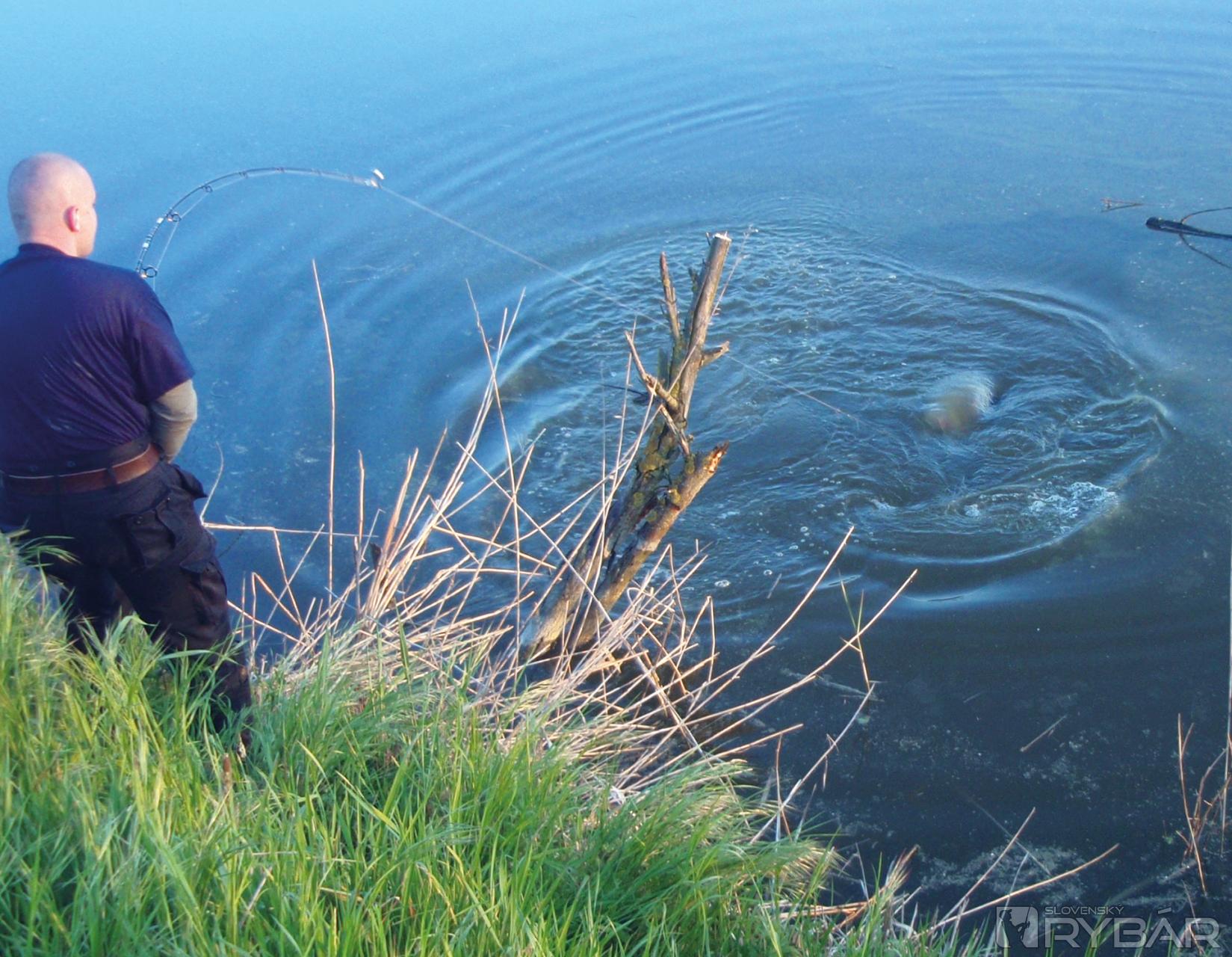 Večer sa spúšťa dážď, pred polnocou už leje. Zdá sa, že to sumcom nevadí. Zábery prichádzajú na Ferov, Mirov a aj môj prút. Všetko sú to však menšie ryby. Práve keď sa po zábere pokúšame vypliesť spomedzi stromov Marcelovho sumca, registrujem zvonenie zvončeka. Jožov prút, ktorý je od nás asi 50 m, je ohnutý ako luk. Špička udice je na úrovni navijaka. Absolvujem krátky šprint. Rybu zasekávam a pár metrov aj ťahám. Udica sa však po chvíli narovnáva. Vyťahujem len nastraženého úhora. Podľa ťahu bolo zrejmé, že išlo o väčšieho sumca.