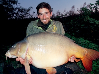 Pred svitaním dostávam ďalší záber, ale tentoraz na Krab/Krilla; ten som nastražil iba na jeden z troch prútov. Je mi okamžite jasné, že ryba je ťažká a treba vyraziť. Zdolávanie prebehlo v poriadku a ja spokojne už za východu slnka podoberám, pričom výsledok ma skutočne prekvapuje. Áno, je to on! Obrovský, 110 cm dlhý a 26,5 kg ťažký šupináč. Je to starý známy z minulej jesene, takmer z toho istého miesta, znovu na Krab/Krill. Ešte aj záber a zdolávanie znovu tesne nad ránom. Neuveriteľné, moja prvá noc a do rána mám na brehu dve monštrá cez 22 kg!