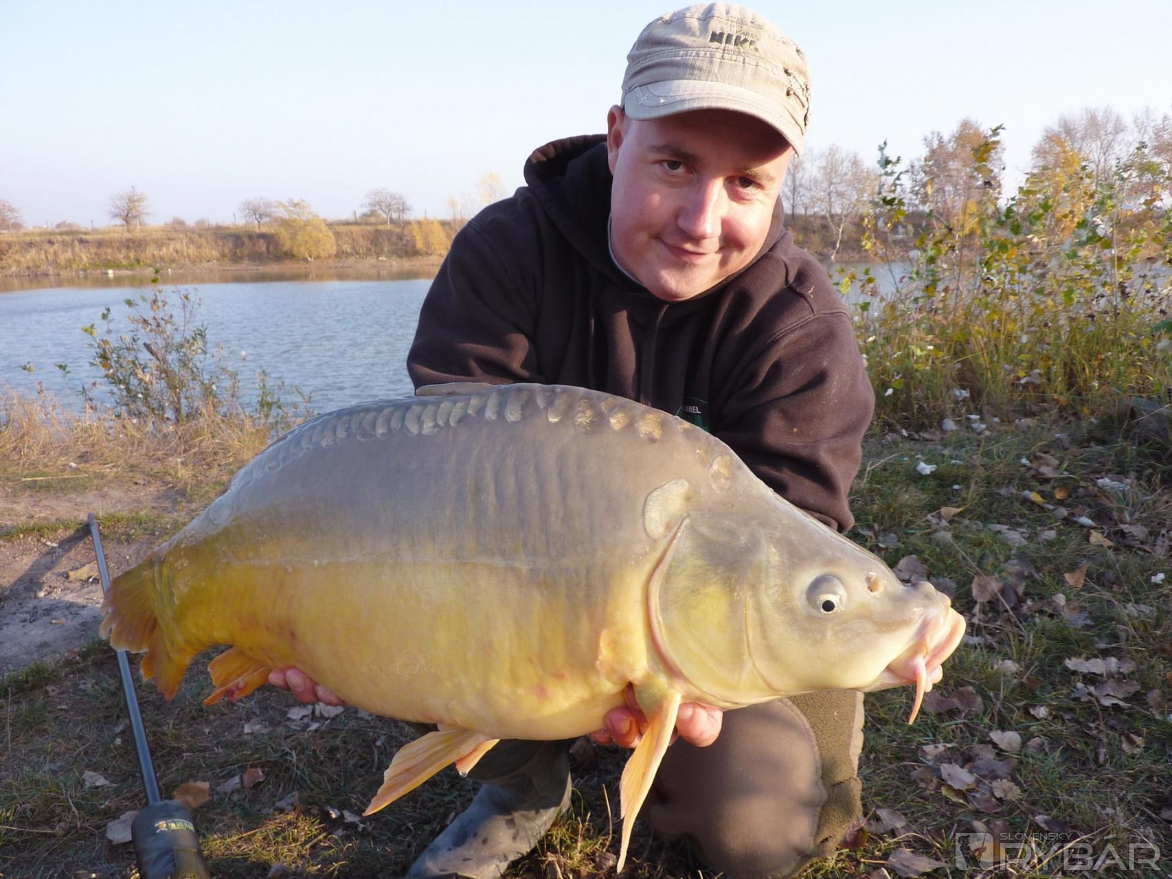 Po ďalších, asi dvoch hodinách, keďže sa nič viac neudialo, sťahujem prúty a presúvam sa na iné miesto, kde som si bol dopredu nakŕmiť zopár hrsťami boilies. Čľup. A je to tam. Asi po hodine sa roztáča cievka opäť s nastraženým Krillom a ja zdolávam ďalšieho z tých väčších. Je to lysec 11,5 kg. Výborne, to som naozaj nečakal! Tajne som dúfal, že sa podarí uloviť aspoň jedného či dvoch kapríkov, ale toto je naozaj nad rámec.