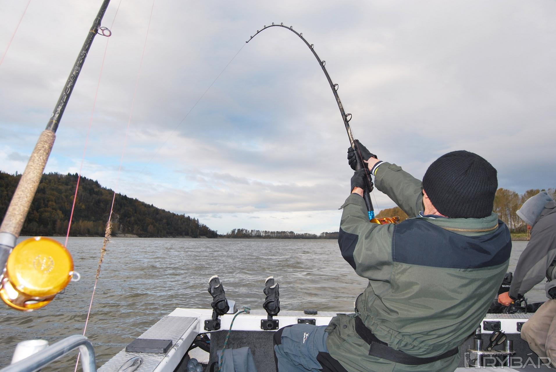 Fraser je porovnateľný s Dunajom iba svojou veľkosťou. Naša desaťčlenná skupina chytala z troch motorových člnov, ktoré patrili profesionálnym rybárskym sprievodcom; tí nám zabezpečili všetko potrebné rybárske náčinie, nástrahy a aj brodiace nohavice a topánky. Udice na jesetery boli jednodielne, nenormálne pevné prúty s veľkými multiplikátormi, aké som videl pri love žralokov a mečúňov.