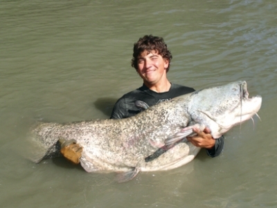 Sumec už bez síl pláva okolo člna, priťahujem ho a jemne klepkám po hlave. Nečakaným mohutným výpadom ma však skoro stiahne do vody! Až sa čudujem, kde ešte nabral toľko síl. Rýchlo povoľujem brzdu. Rybu teda priťahujem na druhý a tretíkrát, keď už ostáva pokojnou.