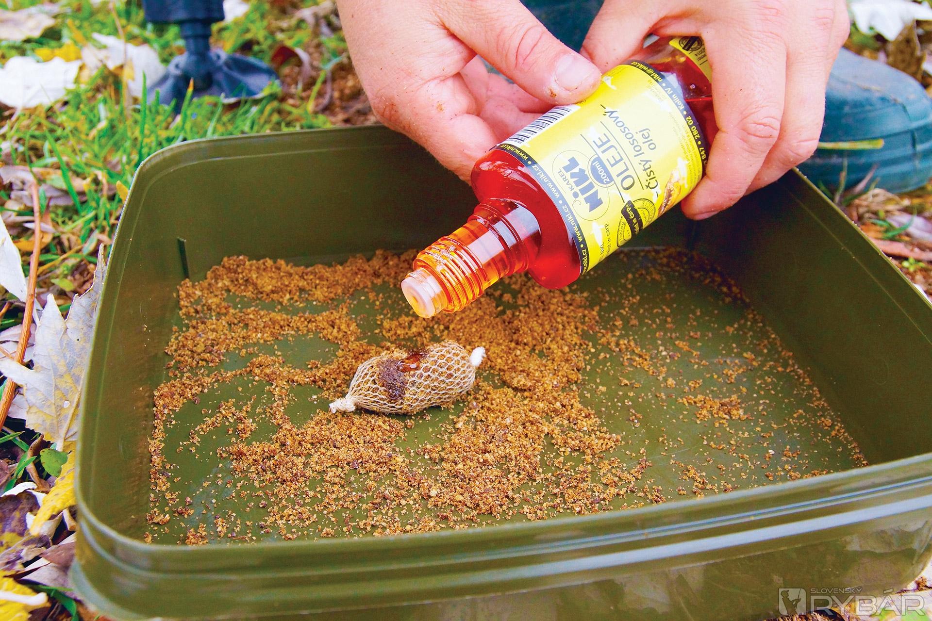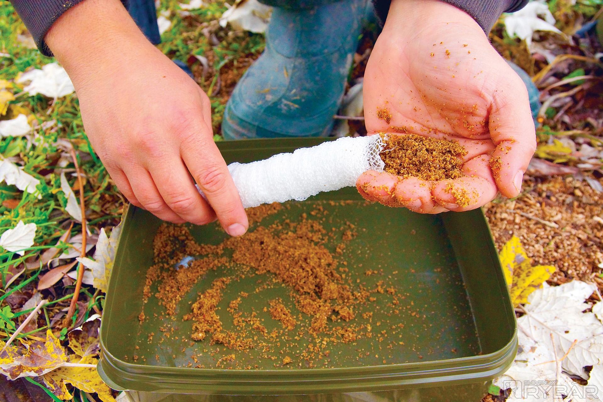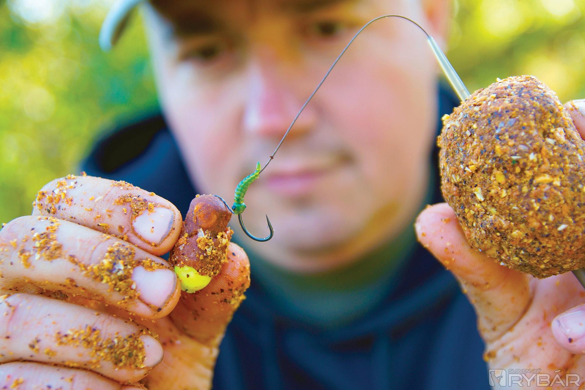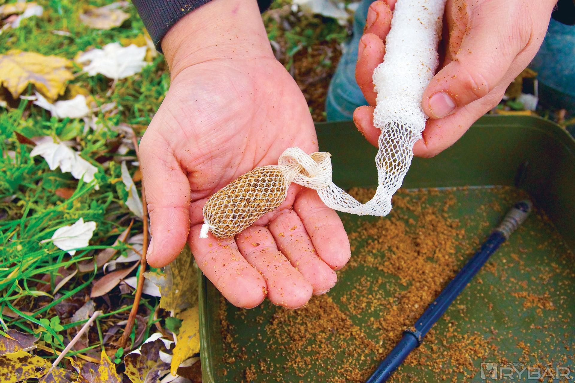 Rozbaľujem aj druhý prút a tu si začínam pripravovať malú PVA pančušku zo stick mixu, ktorý bude novinka na budúcu sezónu. Ide o rýchlo sa rozpadajúce, veľmi aromatické a olejnaté na jemno pomleté zmesi, ktoré lákajú rybu na lovné miesto práve silným aromatickým signálom spolu s olejom stúpajúcim ku hladine. Ryba k takto prikŕmenému miestu pripláva, cíti, že tu niekde je potrava, ale nachádza iba malý obláčik sypkej zmesi, ktorá si pri jej akomkoľvek pohybe aj tak rozvíri po okolí. Ryba nevie nájsť žiadne „sústo“ čo by mohla zožrať iba vami nastraženú nástrahu. Čo myslíte, že zoberie ako prvé? ...