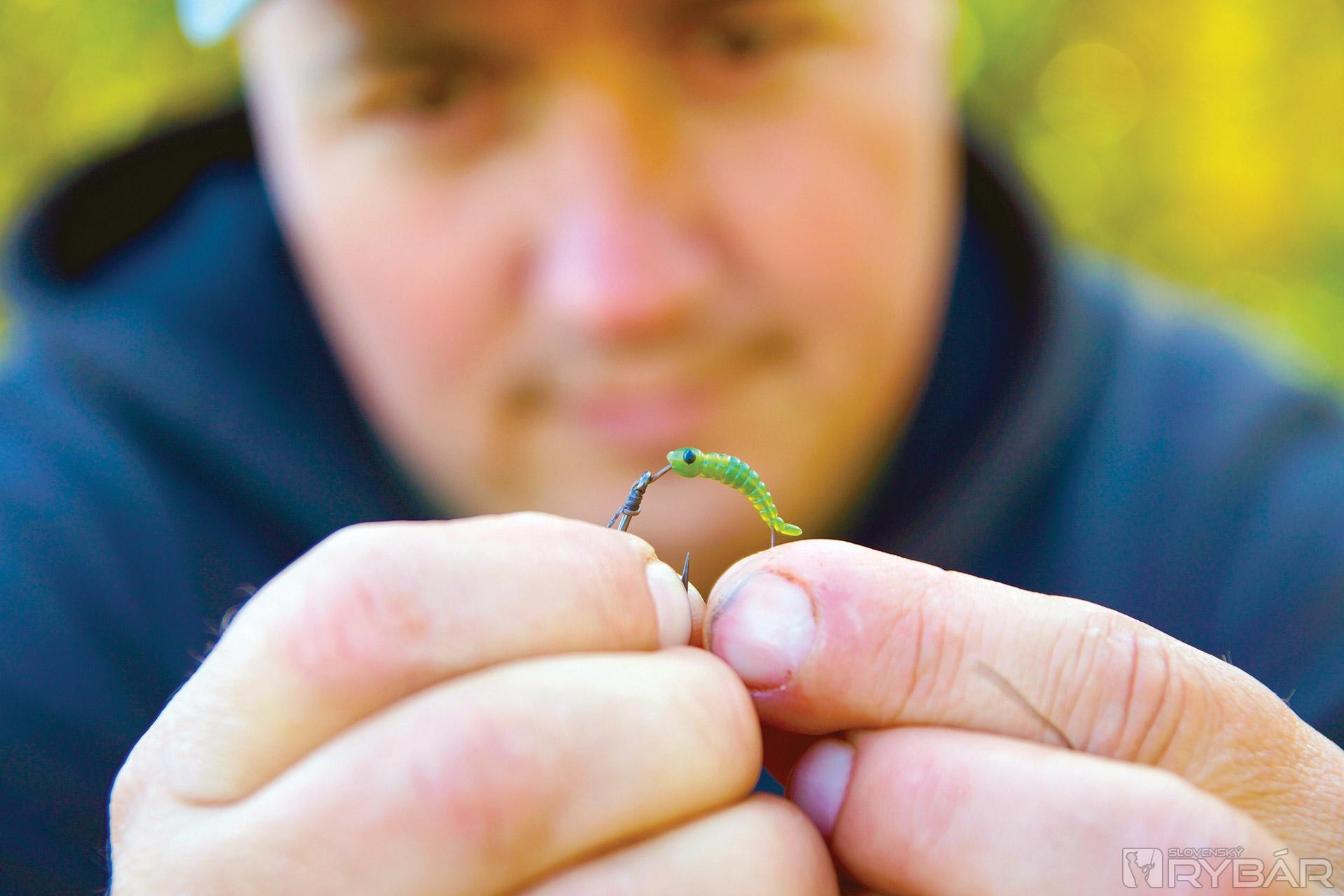Hneď po príchode k vode sa púšťam do príprav montáží a kŕmenia. Na jeden prút si naväzujem montáž s Centurionom č. 8 spolu s krátkym Muthsnaggerom a ako nástrahu pridávam 14 mm Dumbelku Devill Krill spolu s 12 mm pop-up bonbónikom tej istej príchute. Olovo ešte obalím method mixom a montáž letí do vody. Method mix účinkuje okamžite, lebo už po cca piatich minútach mi malý swinger signalizuje pohyb na druhom konci vlasca a ja po krátkom súboji zdolávam malého, odhadom dvojkilového násaďáka. Rýchlo ho púšťam späť, na olovo namačkávam method mix a montáž letí na rovnaké miesto.