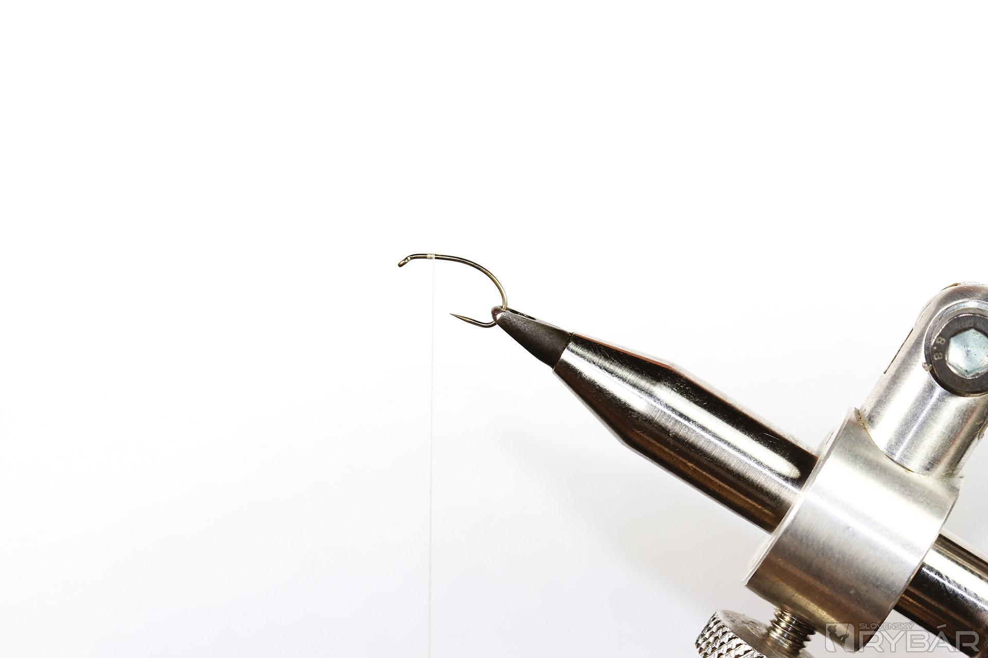 1. Háčik upneme do zveráčika a naviažeme viazaciu niť.
