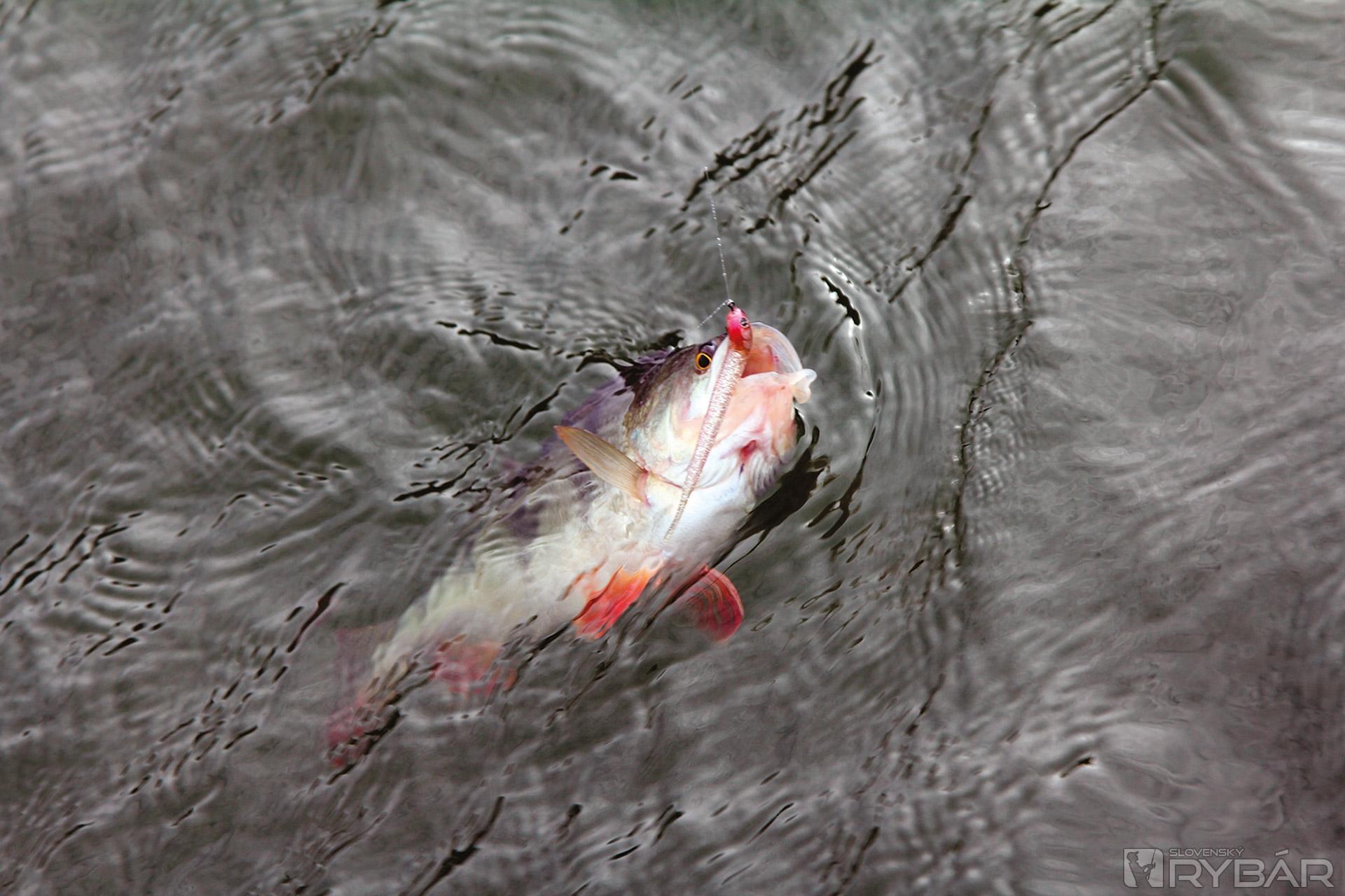 Môj parťak v člne Vojto s pekným zubáčom na vertikál.