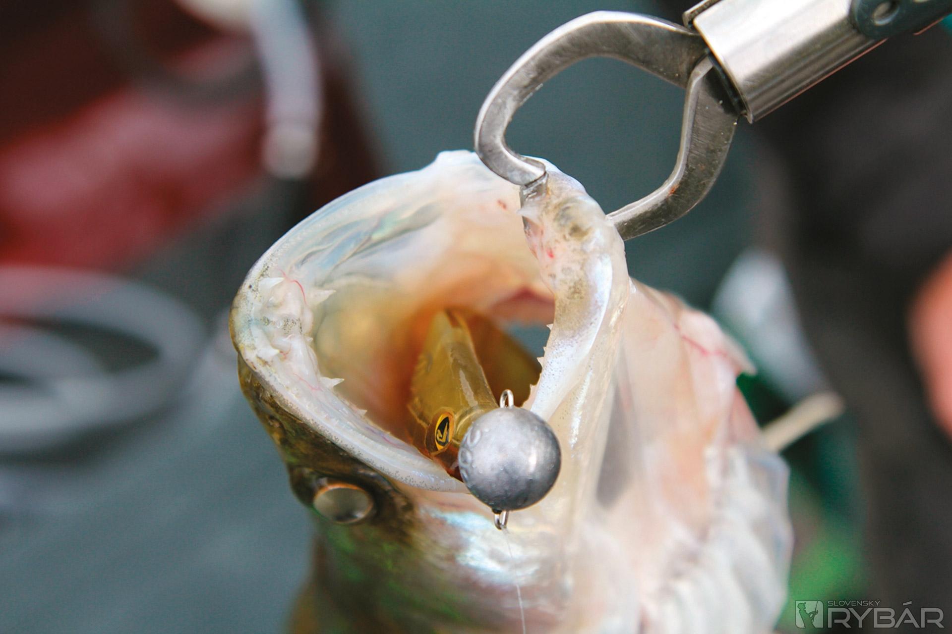 Frédéric pri predvádzaní nástrahy na offsetovom háčiku s náliatkom olova na ramienku.