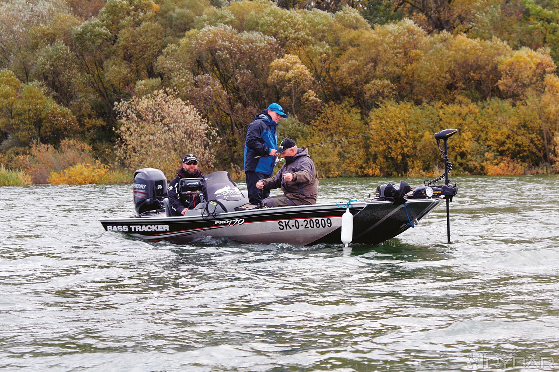 Ráno, ešte pred raňajkami, ideme po tme dať člny na vodu a všetko pripraviť. Som veľmi zvedavý na novinky, ktoré sú pripravené na testovanie, ale najviac sa teším na poobednú prezentáciu noviniek v bazéne. Vidieť niečo zabalené je jedna vec, ale vidieť tú istú nástrahu vo vode oživenú „tvorcom‑profíkom“ je niečo úplne iné. Štartujeme náš redakčný Finval 505 a fičíme k ostrovu. Silný vietor a vlny nám dávajú zabrať. Máme prvé ostrieže, ale musíme sa presunúť, lebo už ani kotva nás neudrží. Rozhodujeme sa pre zátoky v závetrí a postupne kopírujeme breh a prechytávame čo je zaujímavé do 15. 30. O 16.00 sa začína prezentácia pri bazéne, ktorú si rozhodne nechceme nechať ujsť.