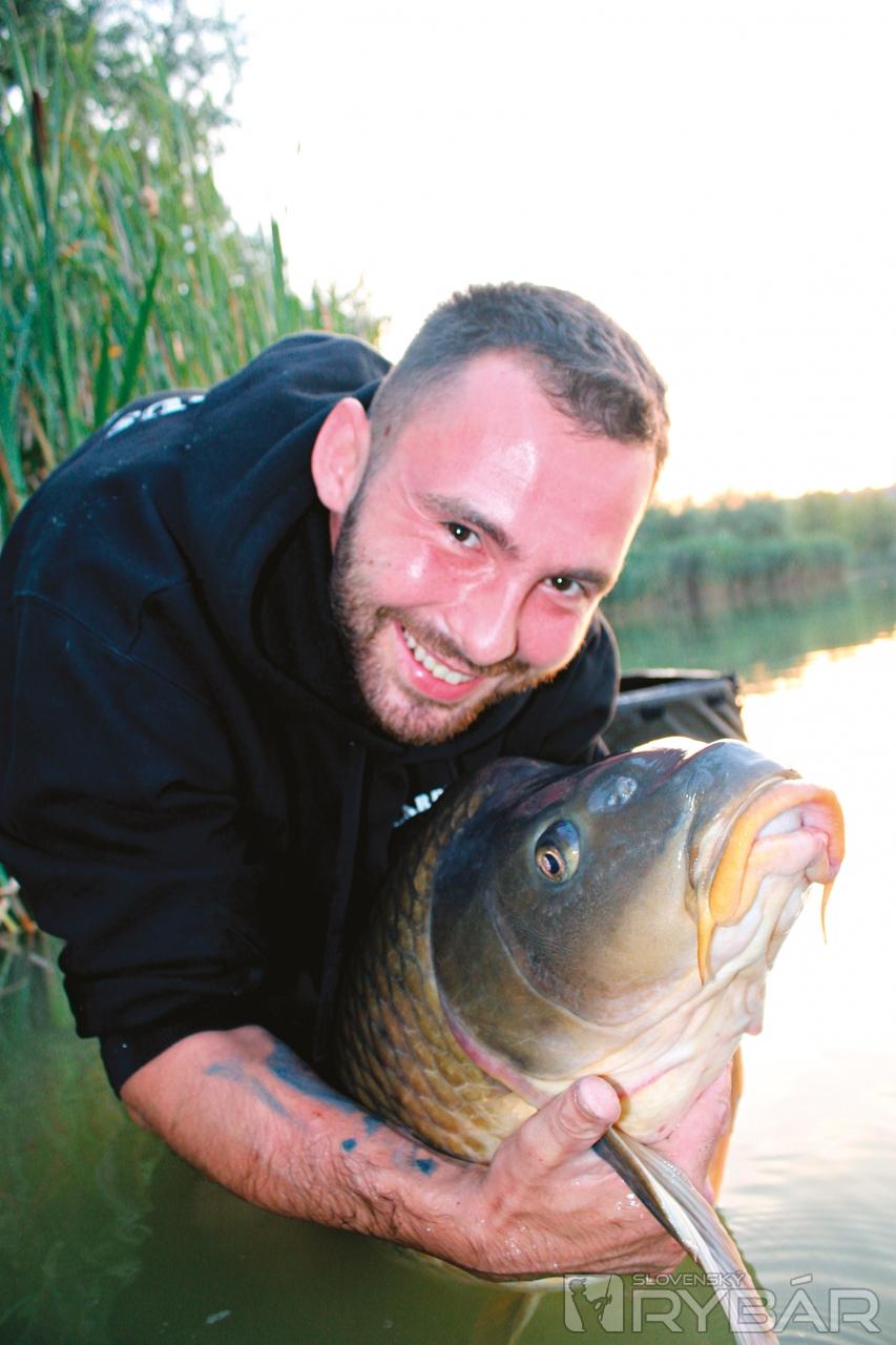 A tak sa aj stalo. Asi po 30 minútach sa z plytčiny ozval hlásič, píp a jemné šponovanie swingra. S pokojom Angličana som dvihol môj Sonik a asi po 5 minútach zdolávania mi bolo jasné, že to je on. V hlave sa mi odohrávali myšlienkové pochody, či nový háčik sedí v papuli tak ako má a či tvrdé výpady kapra vydrží. Počas zdolávania dostávam brutálnu jazdu na druhý prút a bolo veľmi zaujímavé sledovať Kiku ako drží prút a kapor si to berie ako parník. Po menších inštrukciách a smiechu oboch všetko krásne zvládla a po chvíli podobrala menšieho kapríka a hneď ho aj pustila, kým ja som stále zdolával. Po pár minútach sa mi rybu podarilo konečne pritiahnuť k podberáku a hneď na prvý pokus bol môj. Vedel som, že je to môj nový osobáčik a o to väčšiu radosť som mal z toho, že to bolo naozaj o testovaní noviniek. Po vynulovaní vážiaceho saku sme mu navážili krásnych 22,10 kg a pokojne som mohol skonštatovať, že Centurion č. 6 drží ako má a nové pripravované guľôčky od Karliča budú zase famózne. Okrem tejto „Big Fish“ sme ulovili ešte 3 ryby v rozmedzí od 10 do 15 kg a pri krátkodobých vychádzkach, ktoré teraz praktizujem, znova ukazujú svoju silu, no o tom až v ďalšom reporte.