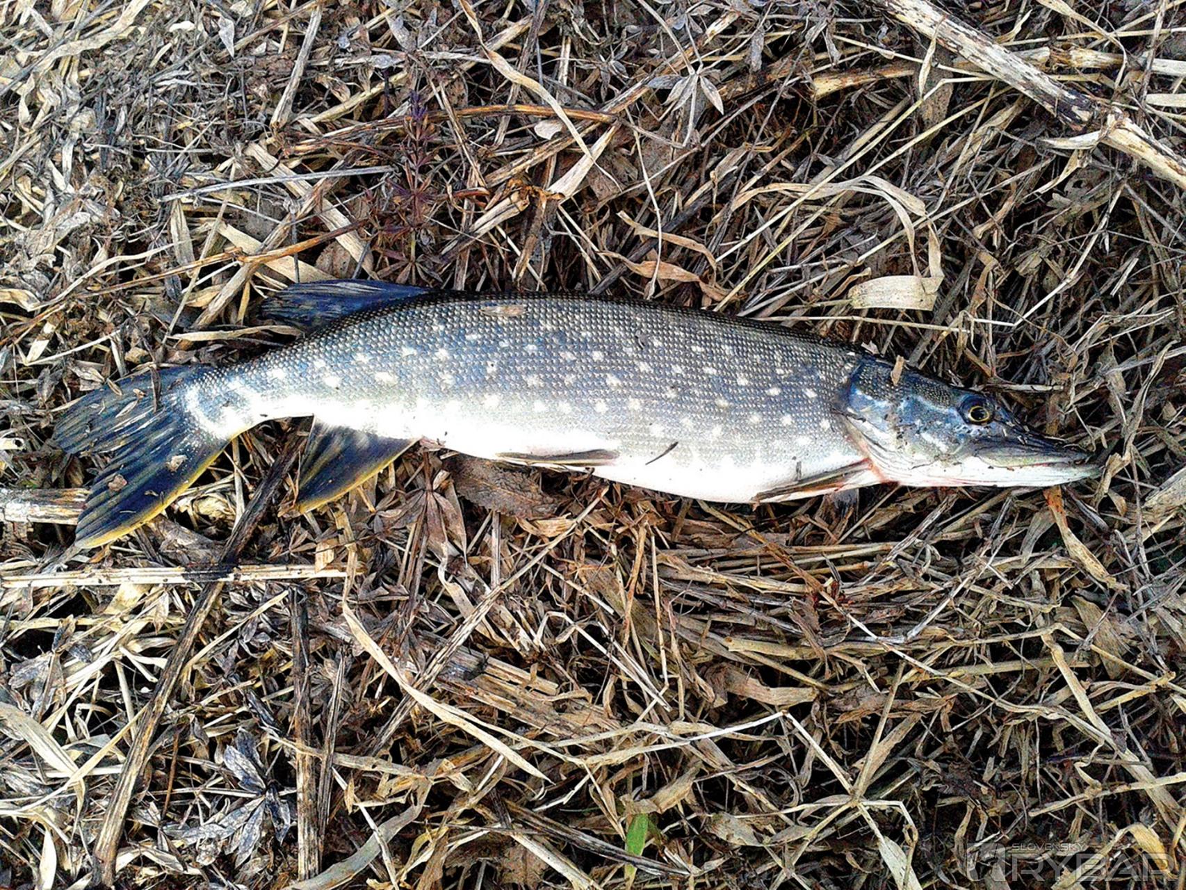 Šťuka ulovená na strímer. Vzdutie pod rybárskym domom.