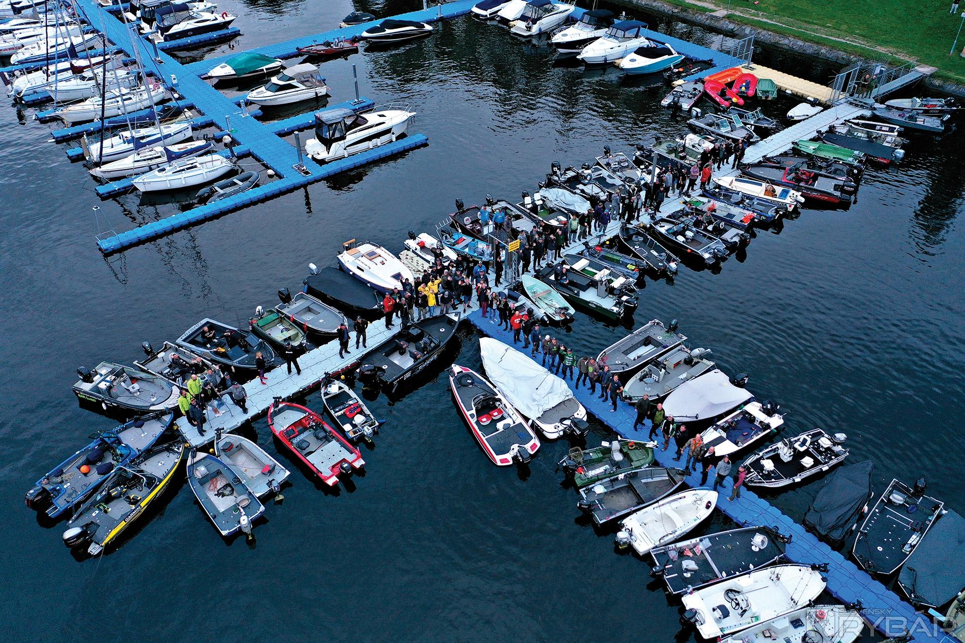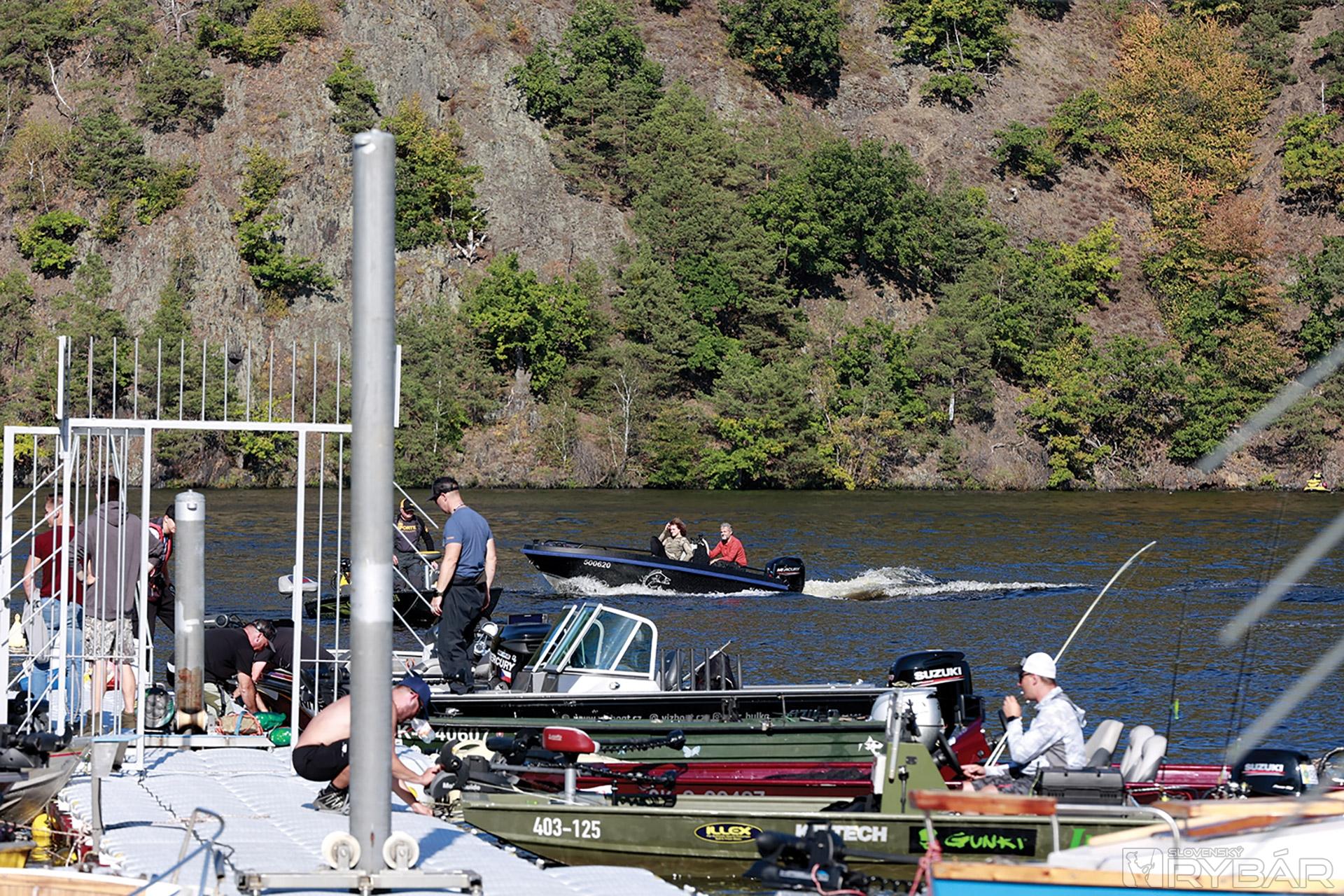 Zoradili sme sa na štart podľa výkonu motorov: najsilnejšie dopredu, a tak postupne až po tie najslabšie, pretože štart prebieha masovo. Je to čisté šialenstvo plné adrenalínu. Viete si predstaviť, keď na vodu vyrazí 88 člnov na plný výkon? Voda vrie, vlny sa na vás valia z každej strany a vy sa snažíte dostať odtiaľ čo najskôr a chytiť tú správnu brázdu. Jednoducho, už štart je zážitok na celý život! Podarilo sa nám dostať na nami vytypované miesto a preteky sa začali. Potvrdili sa naše obavy, že to bude mega ťažké… Čas bežal a aj ľahko chytateľný ostriež bol zrazu problém. Našťastie sa Paľovi podarilo jedného chytiť, a tak sme sa mohli sústrediť na ďalšie druhy. Bodovací systém bol nastavený tak, že z každého druhu sa počítala najdlhšia ryba. Ostriež bol „krát 2“, čiže za každý začatý centimeter boli 2 body a ostatné ryby boli „čo centimeter to bod“. Ak ste chytili v jednom dni tzv. Full House, t. j. 1 zubáč, 1 ostriež, 1 šťuka a 1 boleň, získali ste +50 prémiových bodov. To sa podarilo za celé dva dni len jednému tímu, ktorý nakoniec aj zvíťazil. My sme za celý čas pobytu boleňa ani len nevideli zaloviť a neboli sme sami.