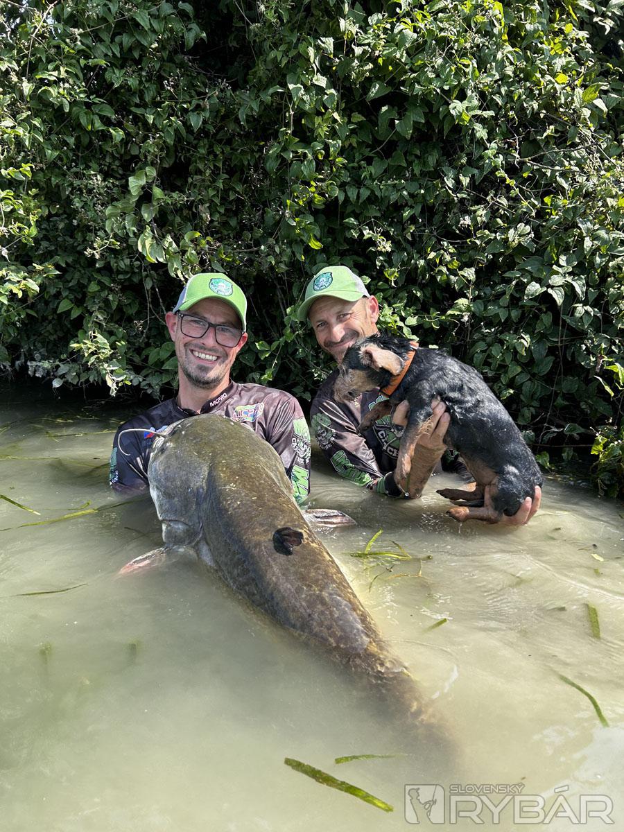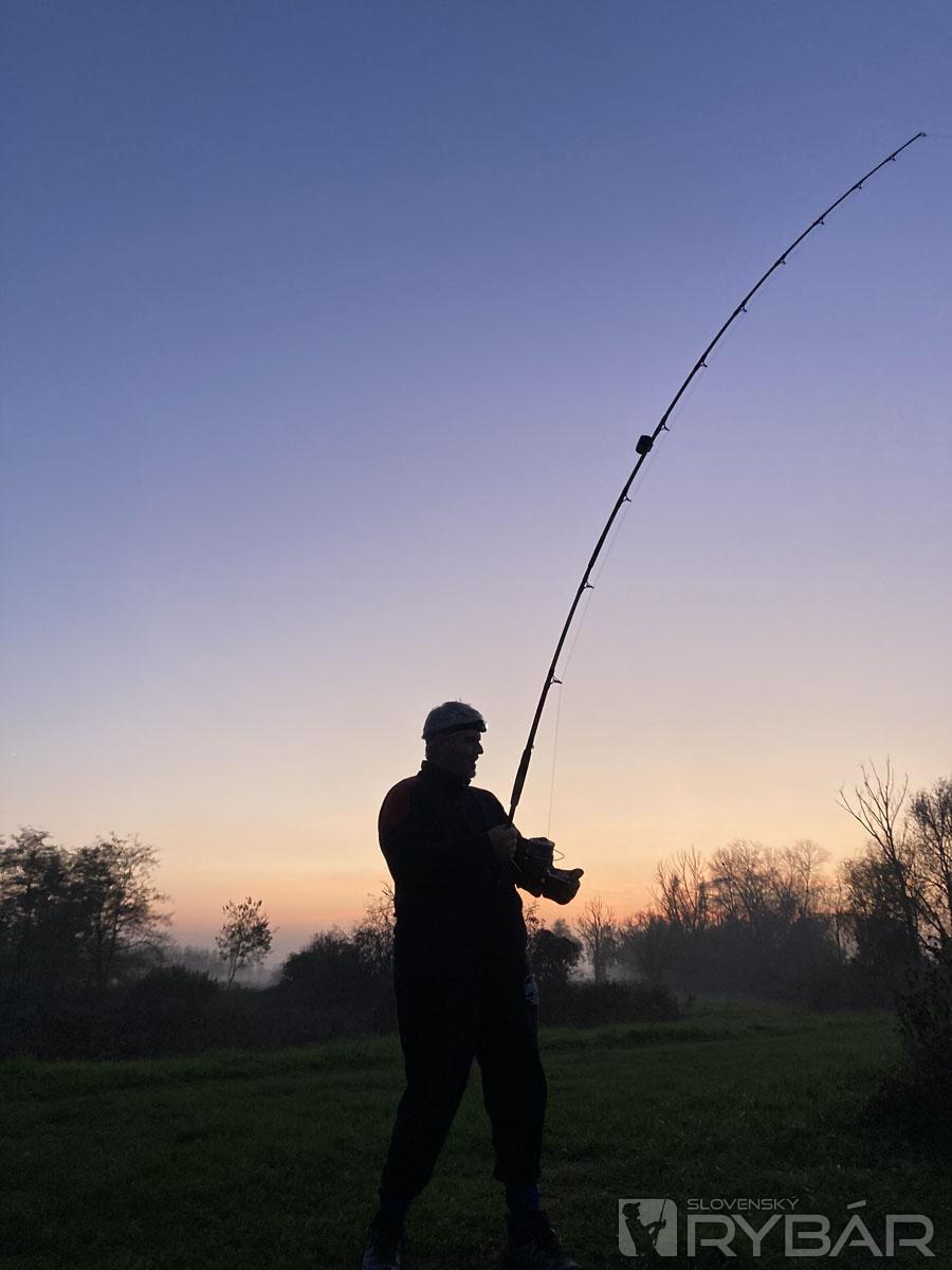Slnko zapadlo, idem si do bivaku po čelovku a kým ju hľadám v taške, dostávam zrazu razantný záber na strednú udicu. Trhací vlasec s priemerom 0,38 mm praská a ja mám na mojej 2,75 m udici celkom slušného fúzatého súpera. Vyzdolávam ho k brehu a tesne predtým, ako idem sumca uchopiť do rukavice, zrazu sa začne ohýbať Radova vrchná udica. V tej chvíli som si začínal uvedomovať, že túto noc sa asi veľmi nevyspíme, no užijeme si super rybačku... (s Radom sme už pred dvoma rokmi v septembri zažili noc, keď sme premenili 11 záberov z 15, a pritom to bola noc, keď som o pol štvrtej vystúpil z člna, že odmietam už vyvážať a potrebujem si aspoň chvíľu pospať... ). Zdolané sumce sú takmer totožné a obidvom zachutil nastražený karas na montáži pozostávajúcej z jedného trojháčika vo veľkosti 1/0 a jednoháčika 5/0. Možno to niekoho prekvapí, ale bežne používam malé sumcové háčiky, keď jednoháčik pichám rybke tesne pod chrbtovú plutvu a trojháčik nechávam voľne opretý o bok nastraženej rybky. Tým, že to viažem na fluorocarbon, mám istotu, že sa to nezamotá a nemá to v tečúcej vode žiadnu vibráciu, ktorá by mohla sumca odradiť.