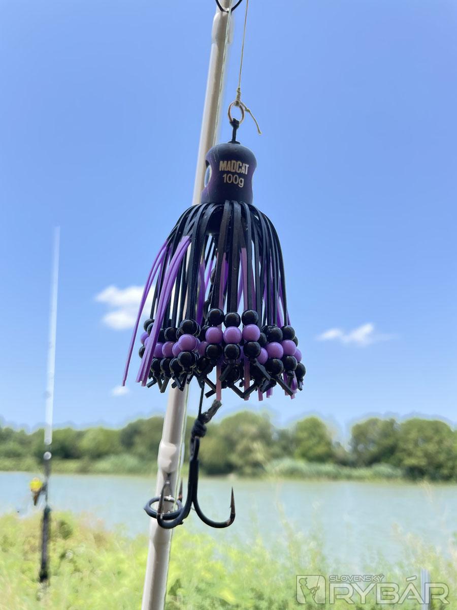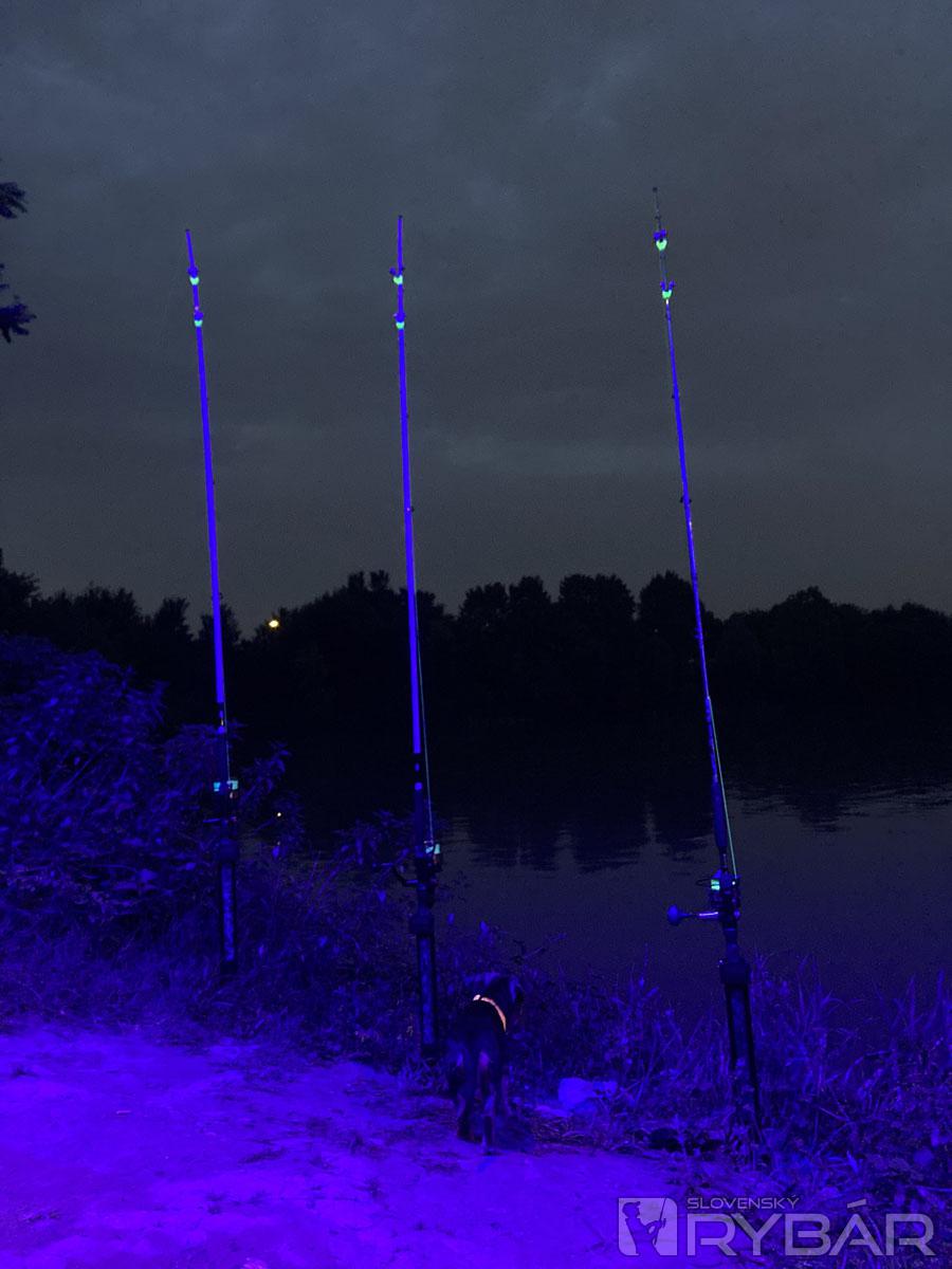 Krásny trávnik, akým by sa pýšilo nejedno golfové ihrisko, rovinka na hrádzi, auto poruke a pred sebou rieka, kde nevieš, kam to skôr vyviezť... Nevýhodou je, že po rieke cez deň jazdia lode, takže sa tu vyváža až večer, aj to s rizikom, že loď môže ísť aj v noci. Hovorím si ok, idem sa tu trošku rozhliadnuť s člnom a zmapovať si sonarom dno. Nedá mi to a beriem so sebou udicu a vábničku. Na 2,1 m vábničkovú udicu viažem čierno fialovú 100 g chobotničku Clonk Teaser, beriem si do člna dve krabičky kanadských červov a dip v príchuti pečeň, bez ktorého túto kombináciu (chobotnička + červy) ani nepoužívam. Predtým než ponorím chobotnicu s nastraženými červami do vody, nechám ju vždy aspoň na 3-4 minúty v dipe Pellet Sauce. Naozaj sa mi zdvihol počet záberov, keď má nástraha aj pachovú stopu.
