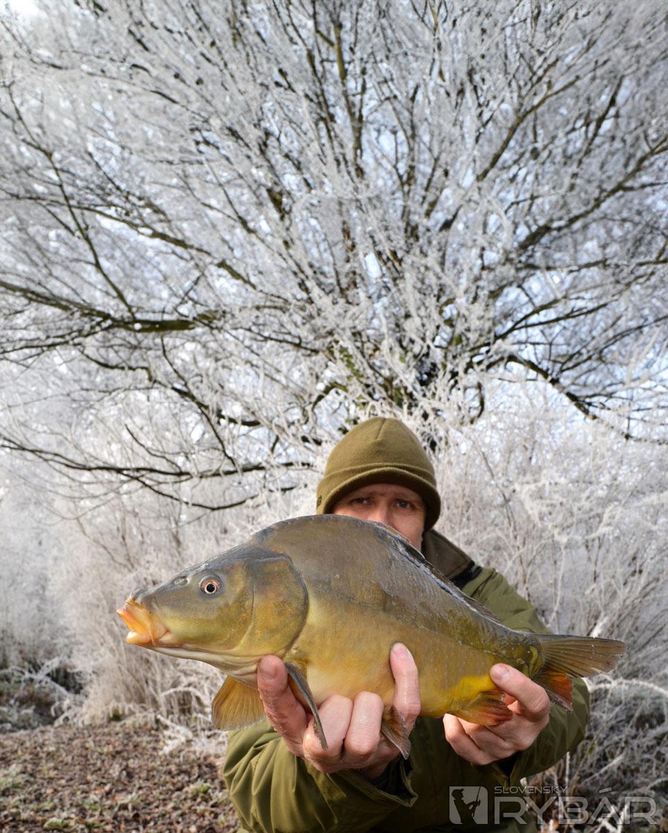 Tento kaprík je tiež pekný a dokonca aj regulárne zaseknutý za papuľu. Takže nástrahu zo dna skutočne zobral. Nie je to teda len nejaká náhodná ryba, ale skutočný zimný úlovok kapra. No, kapra. Nad veľkosťou tejto ryby by sa mnohý kaprár len uškrnul, ale pre mňa je to ryba veľmi cenná. No povedzte sami, koľko kaprov máte ulovených v zime na snehu? Tu to rozhodne nie je o veľkosti!