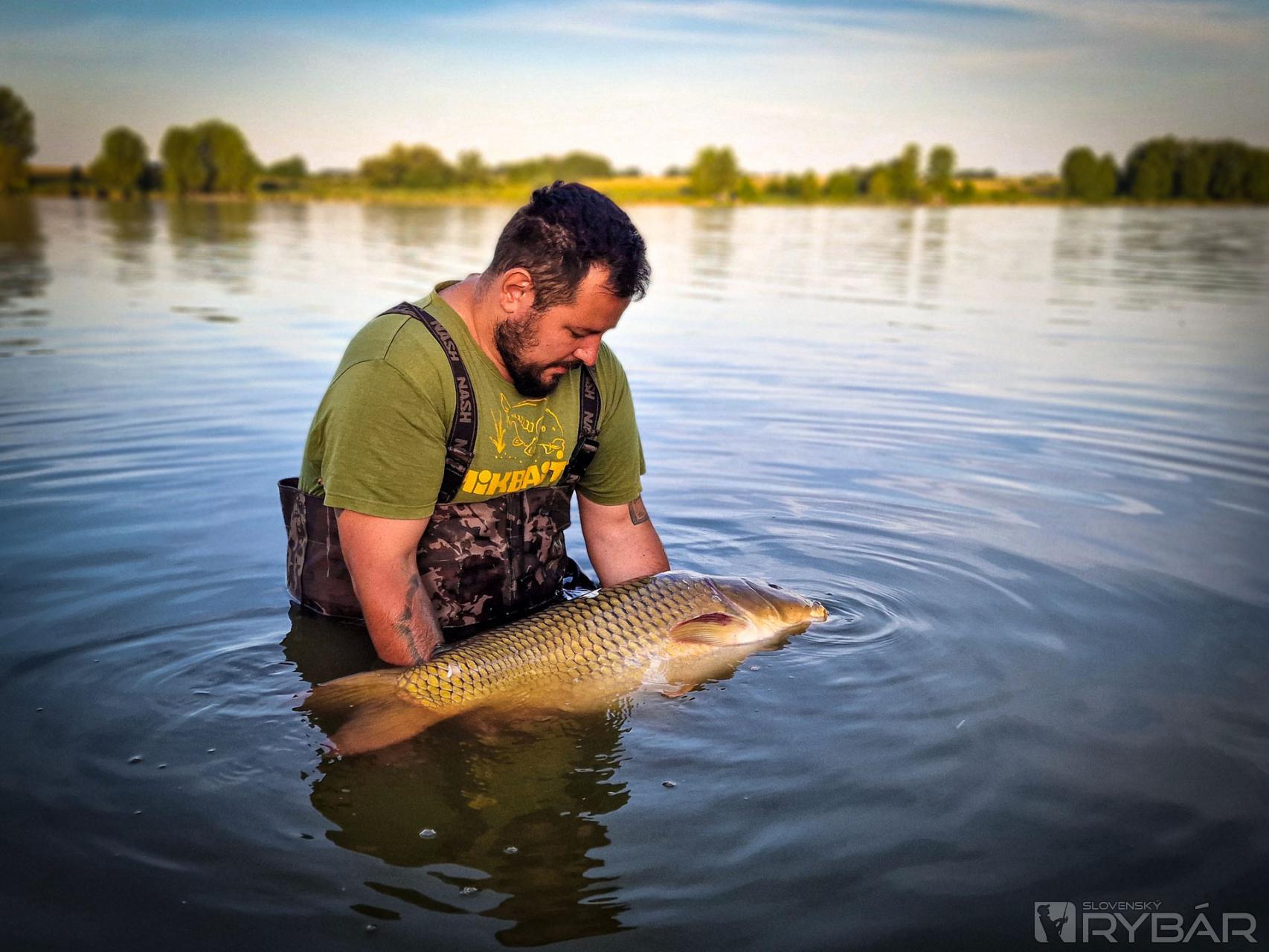 Vzal som prút do svojich rúk, zdvihol k oblohe a vtom prásk, obrovský blesk! Prút som skoro zahodil od ľaknutia, ale radšej som si čupol k zemi, špičku prúta sklonil k hladine, a tak som kapra pumpoval k brehu. V hlave ma viedla myšlienka, že nech je čím skôr ryba vonku na brehu a ja naspäť v bivaku. Keď som rybu pritiahol k brehu a uvidel vo svetle čelovky, tak sa mi roztriasli kolená a hovoril som si, že to nie je možné... Bol to obrovský kapor, ktorého sa mi podarilo podobrať rýchlo a dať do prechovávačky a čakať, než skončí búrka. Tá trvala pomaly celú noc, a tak sme rybu odvážili až ráno chvíľku pred odjazdom. Váha ukázala úctyhodných 23,70 kg, čo bolo niečo úžasné! Obaja sme sa neskutočne tešili, rybu rýchlo pofotili a šetrne vrátili do jej domova, do priehrady. Zbalili sme bivak a prúty, následne nasadli do auta a vyštartovali domov.
