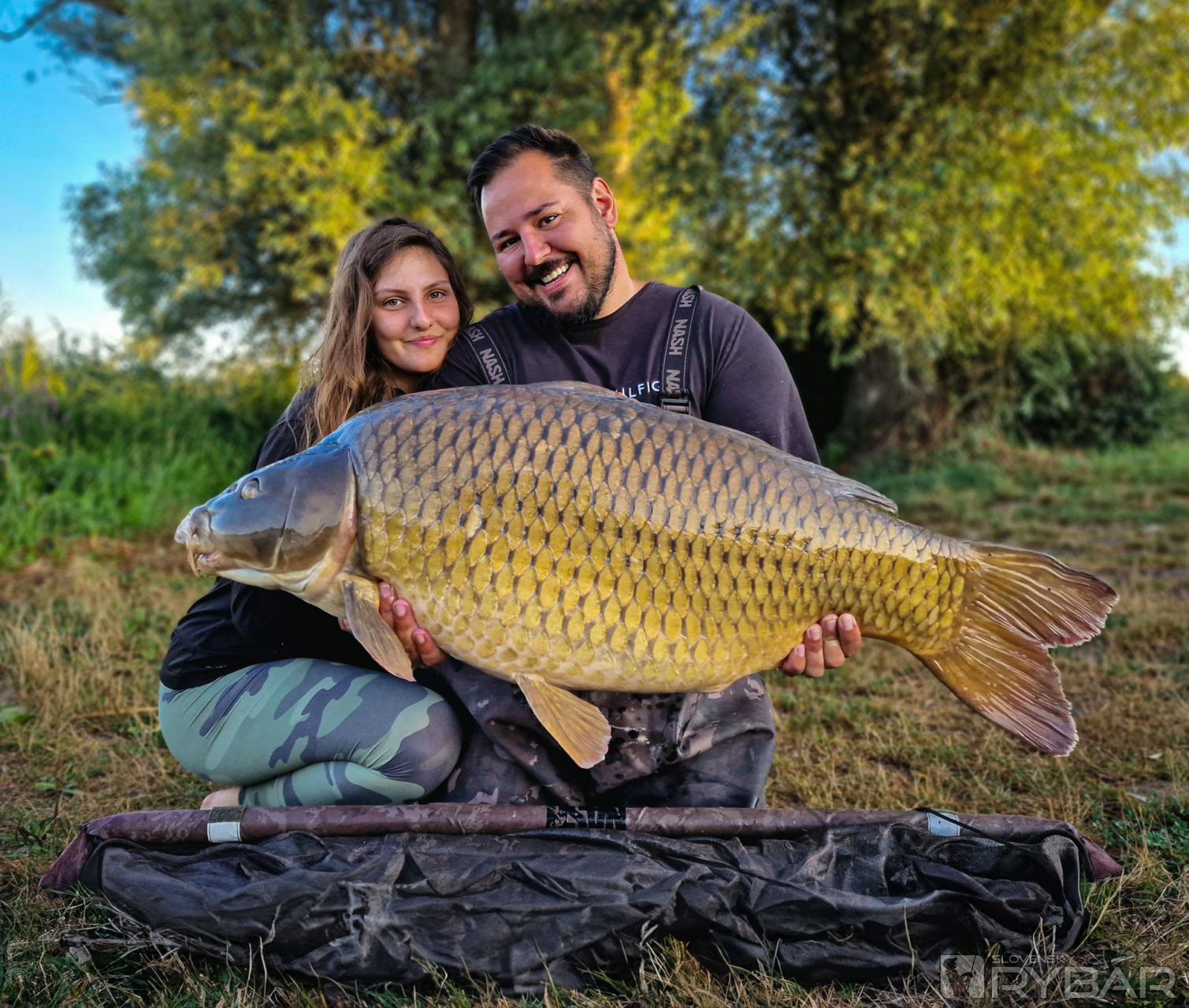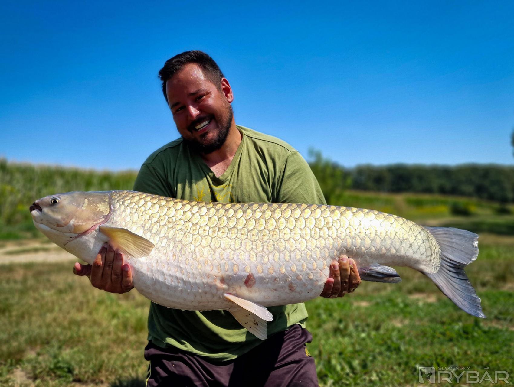 Pri východe slnka dostávam pomalú jazdu na G2. Rýchlo som vstal, vybehol z bivaku, zdvihol prút do rúk a zacítil som, že to bude lepšia ryba. Podarilo sa mi ju zdolať a po chvíľke ma Hanička fotila s kaprom cez 18 kg. Ráno mi začalo prichádzať zopár telefonátov od parťákov, s ktorými chodievam na kaprárske výpravy, že dnes prichádza môj deň a mám sa pripraviť, avšak kapor už bol ulovený a každý jeden z nich tvrdil, že to nie je možné. Pousmial som sa a tešil, že sa podarilo uloviť aspoň jednu lepšiu rybu. To som však ešte netušil, že o pár hodín sa osvedčí aj Hankin výber BigB. V najväčšom teple počas dňa dostávame záber aj na tento prút. Zo začiatku som si myslel, že to bude menšia ryba, ale pri brehu som zacítil opak a zároveň zistil, že to bude amur. Po veľkom boji sa Hanke podarilo podobrať amura a až v podberáku sme zbadali, s akou rybou máme dočinenia. Bola to obrovská ryba presahujúca 25 kg hranicu! Amurom som sa chcel síce na tejto výprave vyhýbať, ale ryba v takýchto rozmeroch ma neskutočne potešila – predsa len to bol môj najväčší ulovený amur v živote.
