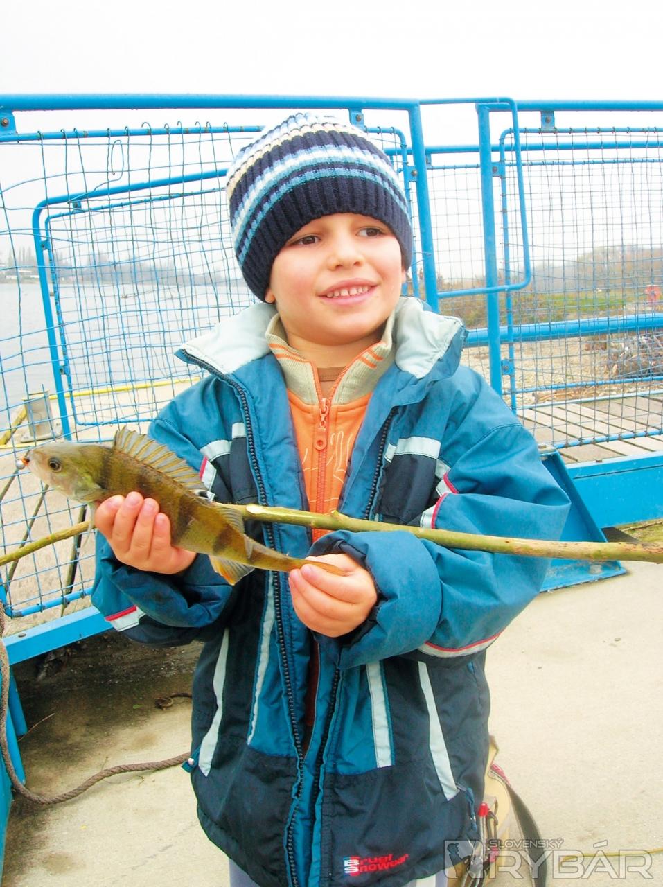 Vždy, keď som vzal svojho najmenšieho Matíčka na ryby, tak som to bral viac-menej ako vychádzku. Vždy som mu chytil zopár jalčekov, alebo ostriežov, s ktorými sa chvíľu pohral a potom ich pustil späť do vody. No bolo len otázkou času, kedy začne pýtať do ruky udicu. Keď prišiel ten deň D, tak som mu odrezal vŕbový prútik, nadviazal naň kus vlasca a na koniec priviazal vlastnoručne uviazaný čierny jig. Netrvalo dlho a začul som víťazný pokrik 4 a polročného rybárika. Otočil som sa a maličký bojoval s asi dvadsaťpäťcentimetrovým ostriežom, s prútikom zohnutým ako luk. Po krátkom boji som sa hneď vrhol na dokumentovanie prvej rybky maličkého rybára. Takže tu sú unikátne zábery tej úplne prvej, ktorá bola vrátená vode.