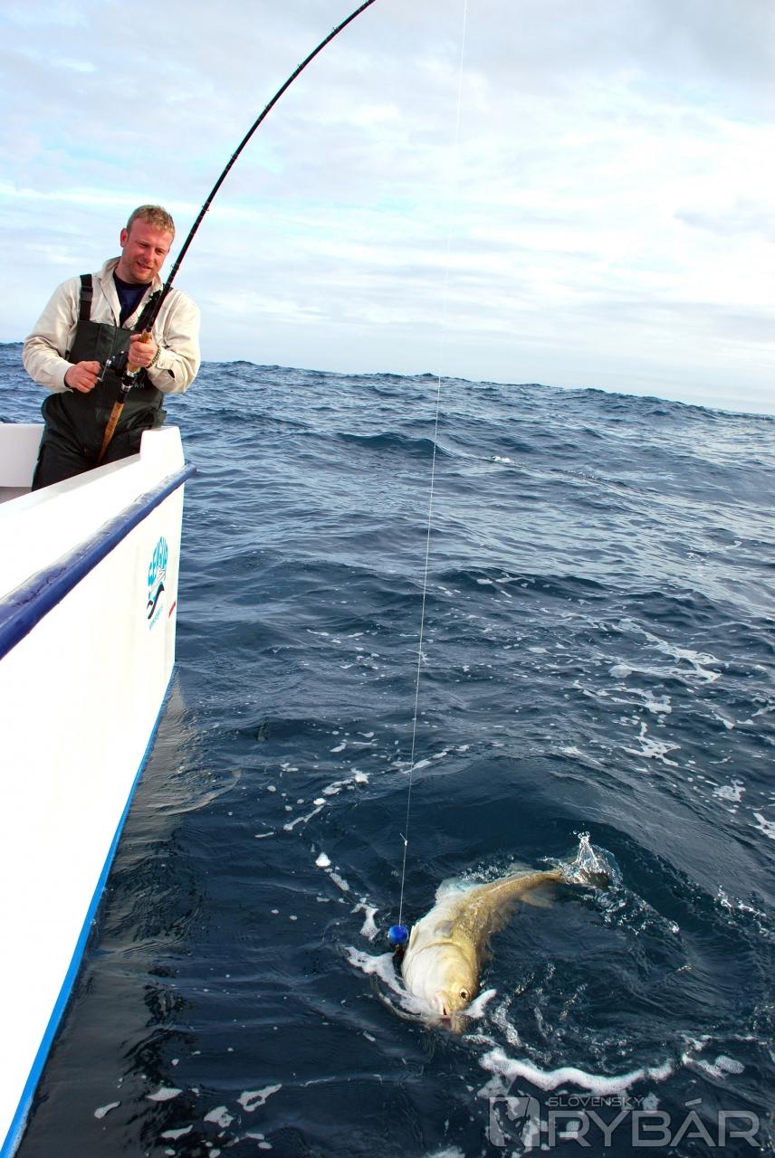 Začíname loviť v hĺbke 70 metrov a driftujeme na hĺbky 30-40 metrov. Rozpútali sa ozajstné tresčie orgie. Počas hodiny David len tesne minie metrovú hranicu treskou 98 cm, o desať minút neskôr triumfuje Saša treskou 107 cm a o ďalšiu hodinu máme v lodi ďalšie dve metrové tresky. Radek, ktorého parťák Petr zostal ráno doma, nás vo chvíli, keď je naplnená prvá debna na 250 kilo rýb, presviedča, že v najlepšom treba urobiť pauzu.