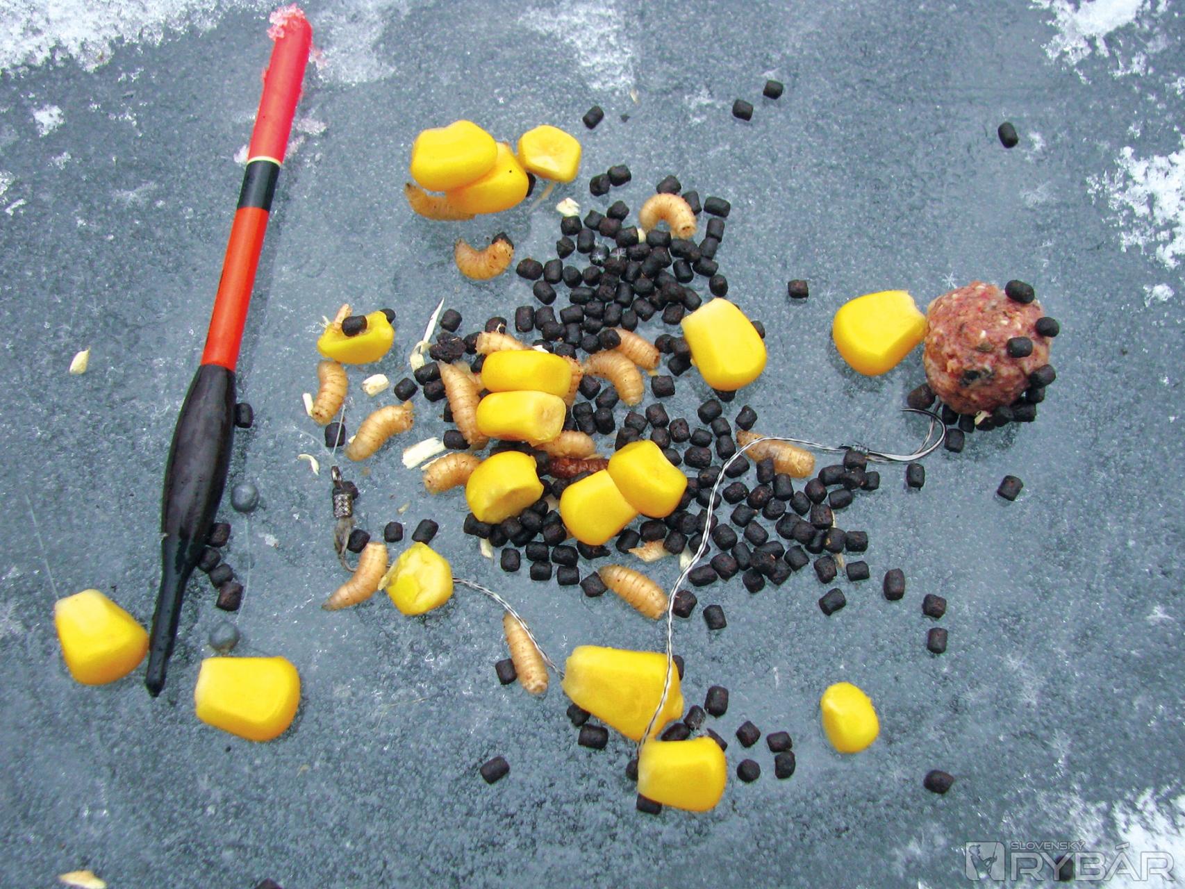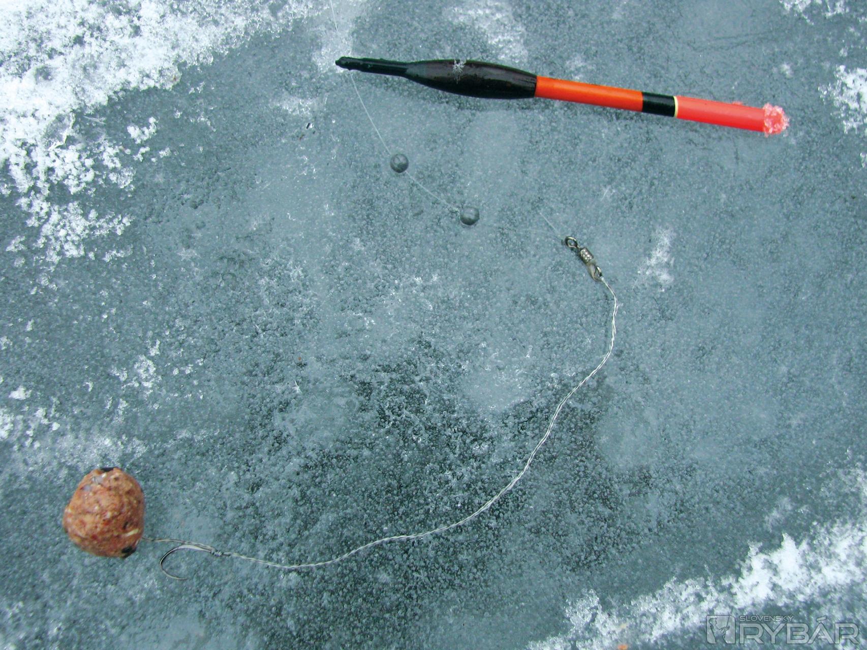 Zaujímavou zostavou je aj použitie plaváka, olovka s veľkou dierkou a zarážky v kombinácii s lisovaným rožkom. V takomto prípade leží záťaž na dne a nástrahu necháme zdvihnúť 5-10 cm nad dno. Pretože sa v priebehu roka venujem predovšetkým klasickému lovu kaprov s nástrahou mimo háčik, mám tendenciu skúšať tento spôsob nastraženia aj pri love pod ľadom. A naozaj som s vlasovou metódou zaznamenal niekoľko úspechov, predovšetkým pri použití malej pružinky obalenej boilies cestom. Jemná a dobre zostavená montáž spolu s lákavou aromatickou nástrahou sú základom vášho zimného úspechu.