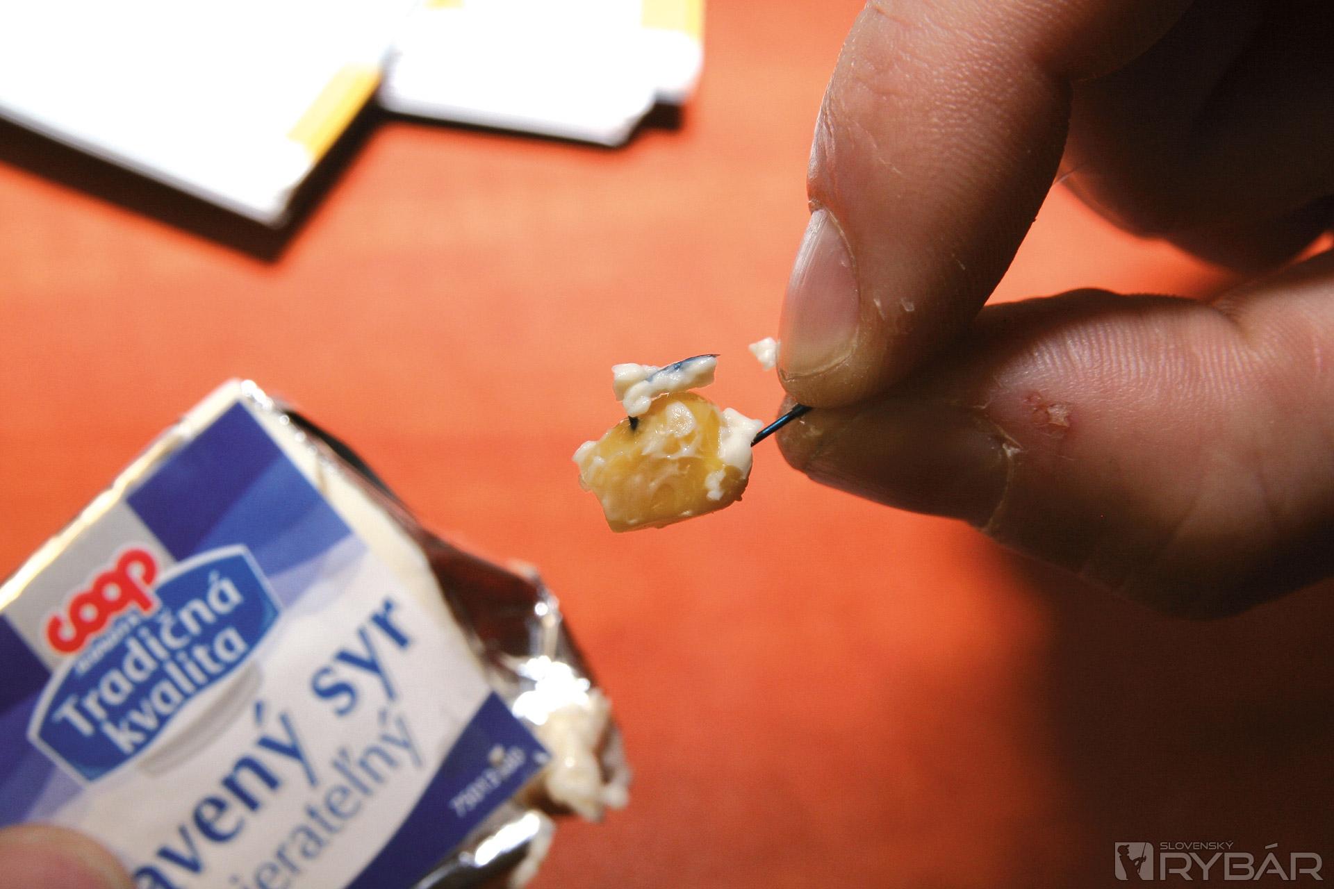 Čo sa týka výberu nástrah, otvára sa nám zaujímavá paleta rozličných možností. Ako prvú by som odporučil bonduelku namazanú taveným syrom. Syr pôsobí na kapra (a nielen naňho) veľmi príťažlivo a kukurica v tomto prípade vystupuje najmä ako nosič. Vždy, keď som na zrnko kukurice namazal trochu syra, výrazne sa mi zvýšil počet záberov. Veľmi vhodným vylepšením tejto nástrahy je ešte pridanie jedného alebo dvoch kostňákov. Dôležitá finta, ktorú praktizujem, spočíva v tom, že kukuricu háčikom najprv naskrz prepichnem a potom háčik opäť schovám dovnútra kukurice. Háčik pri záseku prenikne do rybieho pysku. Inou skvelou nástrahou je lisovaný rožok, ktorý môžeme ešte vylepšiť taveným syrom.