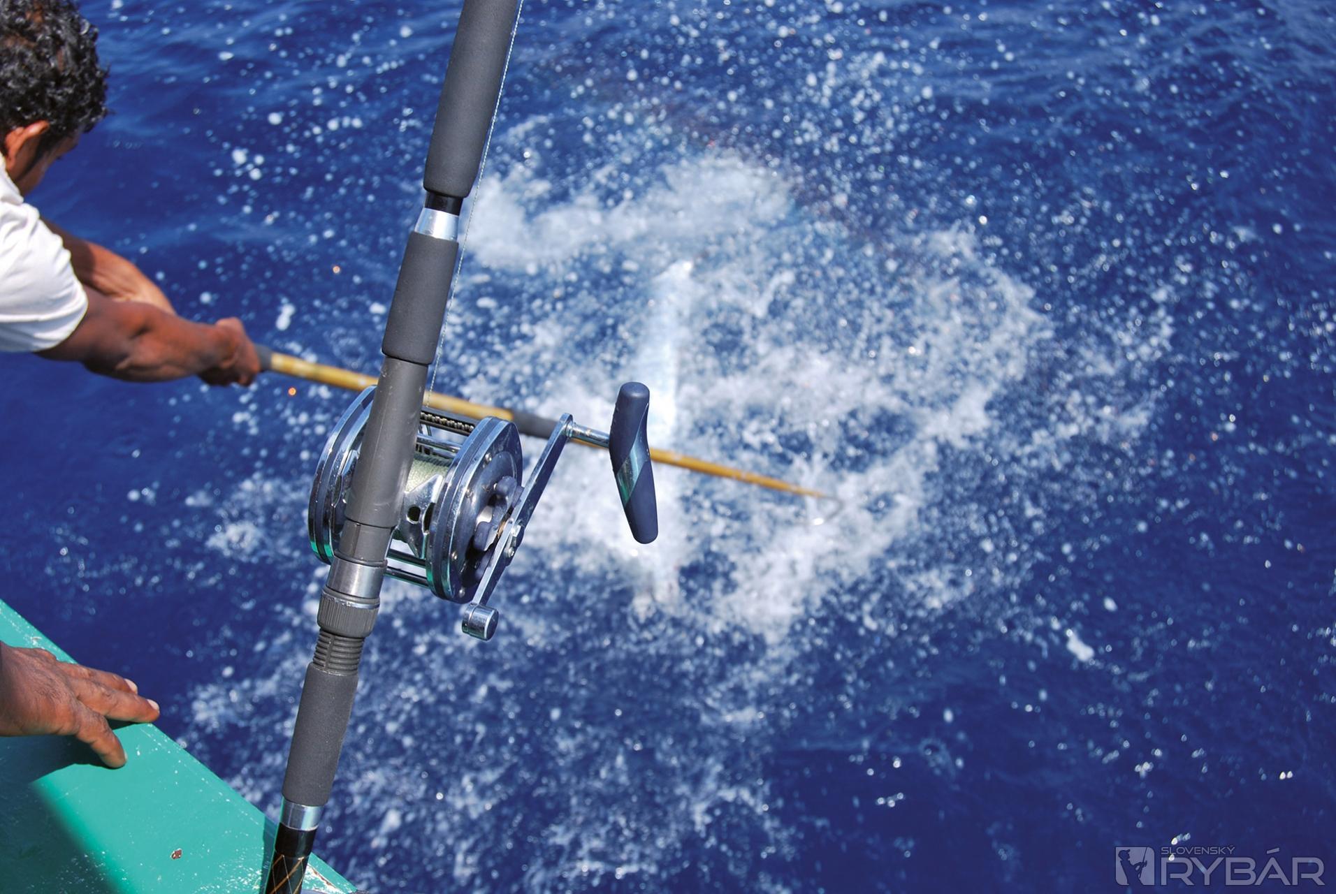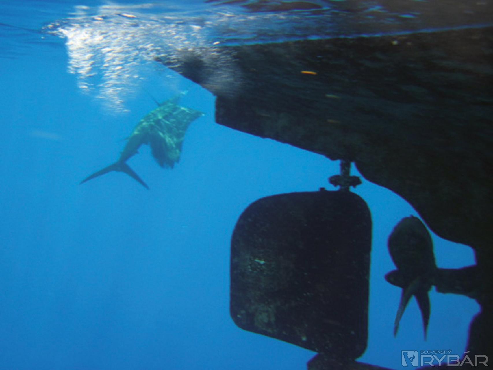 Netrpezlivo čakáme, kedy po prvýkrát zbadáme telo ryby medzi vlnami. Minúty ubiehajú a napätie udice a rybárov rezonuje vzduchom. „Bože, to je hovädo!“- vyhŕkol Rišo, ktorý nahnutý cez zábradlie prvý vidí vzopätú rybu plávajúcu tesne pod hladinou. Telo ryby sa kladie na vodu a vzápätí sa vymršťuje do výšky. Špic nosa plachetníka zasvišťal pred našimi očami.