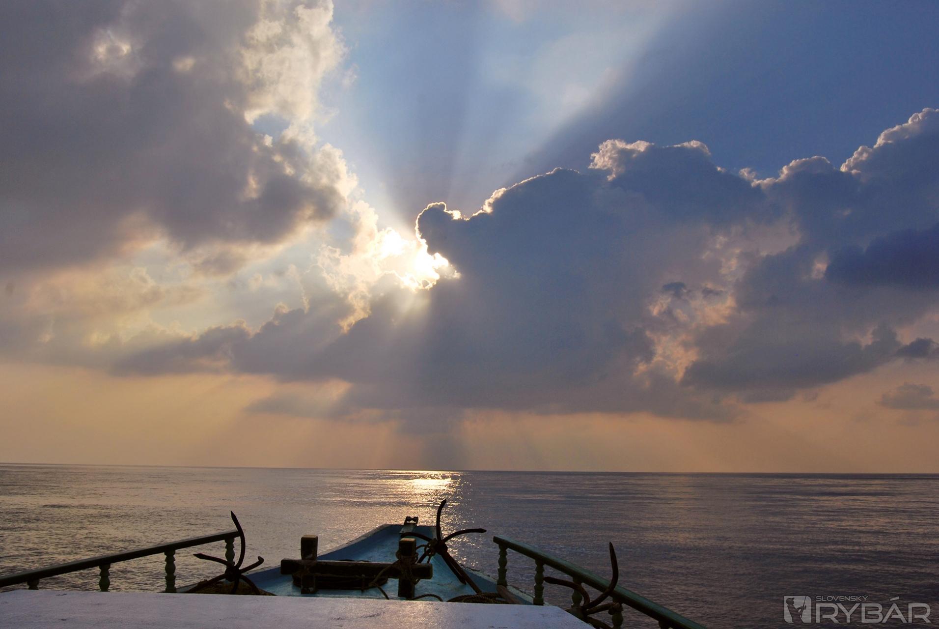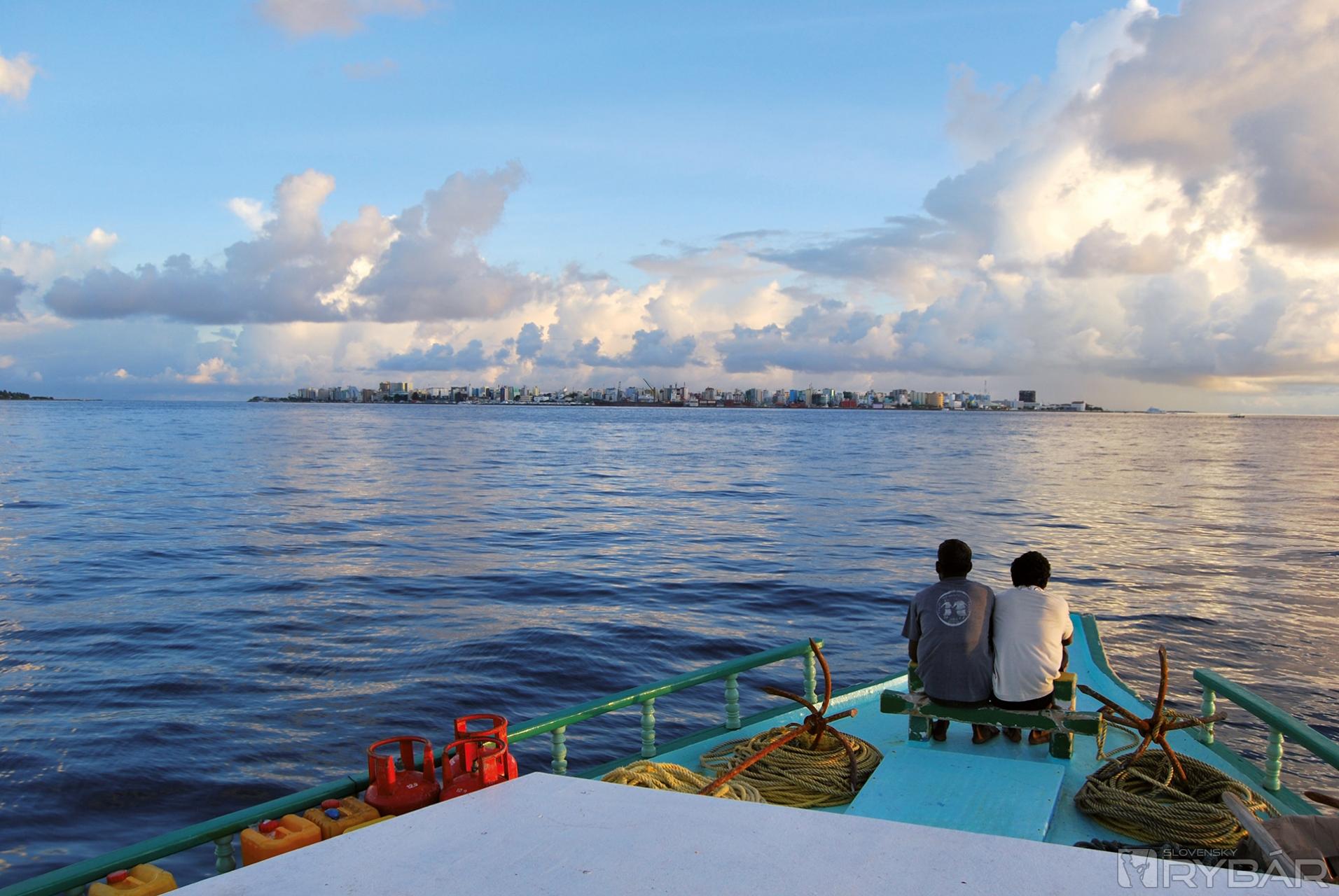 Večer pristávame pri jednom z deväťsto obývaných ostrovov Maledív, aby sme doplnili zásoby vody. Tento ostrov nepatrí medzi tie, ktoré nájdete na gýčových fotografiách známych cestoviek. Je to malý ostrovček obývaný iba miestnymi obyvateľmi. Kapitán nás poprosil, aby sme šetrili vodou, lebo i na ostrove je jej nedostatok a mohol by vzniknúť problém, že ak ju budeme potrebovať o pár dní, tak ju jednoducho nedostaneme...