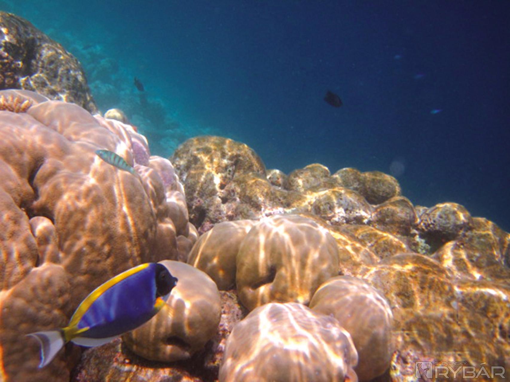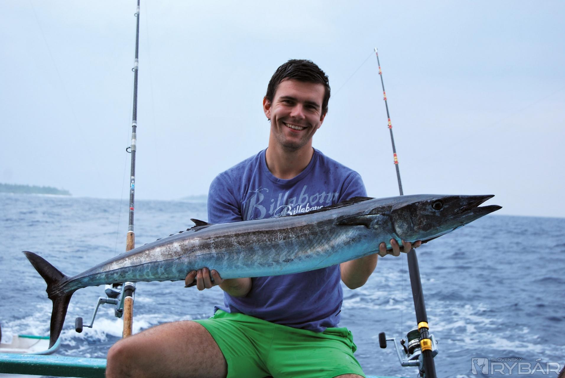 Vyplávali sme na svitaní. S veľkou nedôverou púšťame nástrahy do vody a v duchu závidíme germánskemu rybárovi jeho originálnu továrenskú výzbroj a sprievodcov. Brázdime pokojné more popri atole a za loďou poskakujú naše nástrahy.