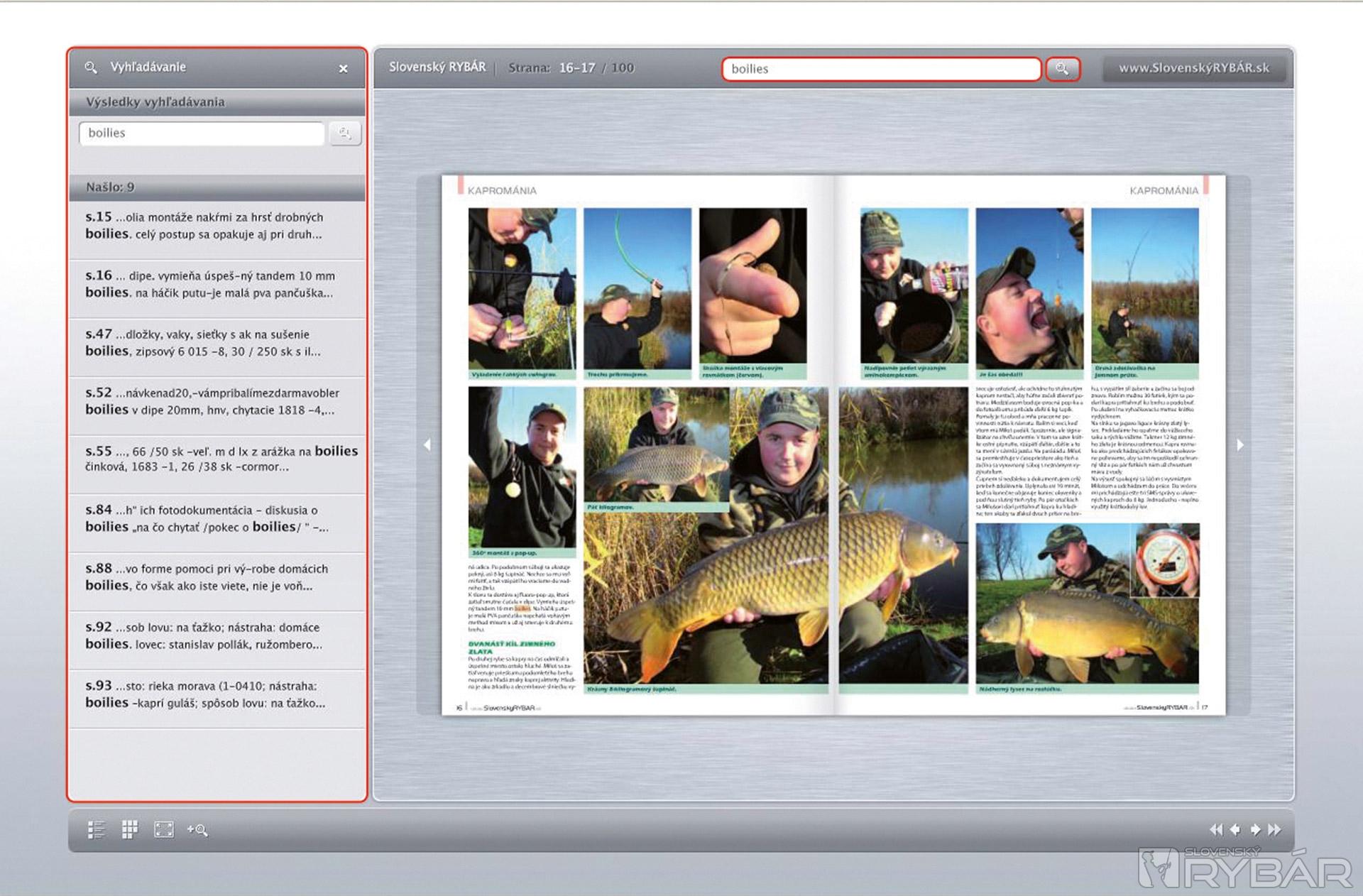 3 Vyhľadávanie - zobrazenie hľadaného slova v celom čísle magazínu.