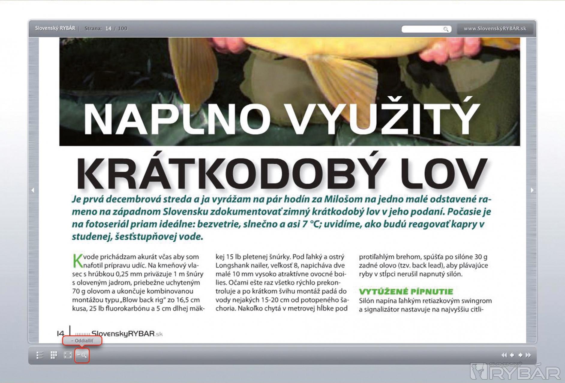 Kliknutím na tlačidlo prepnete obrazovku do „režimu celej obrazovky“. Takto vás nebude pri prezeraní časopisu rušiť spodná lišta na vašom monitore a čítanie si vychutnáte v plnom rozlíšení.