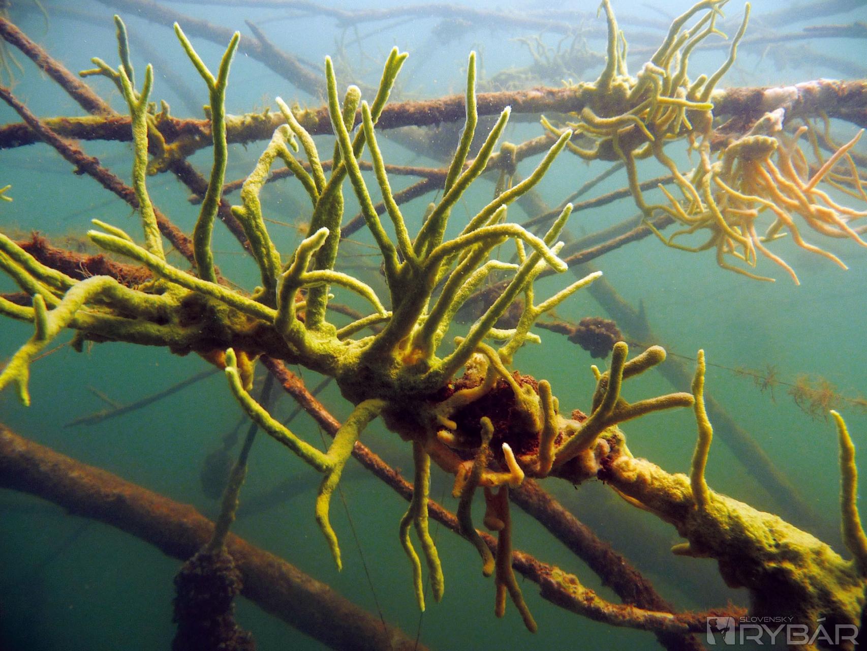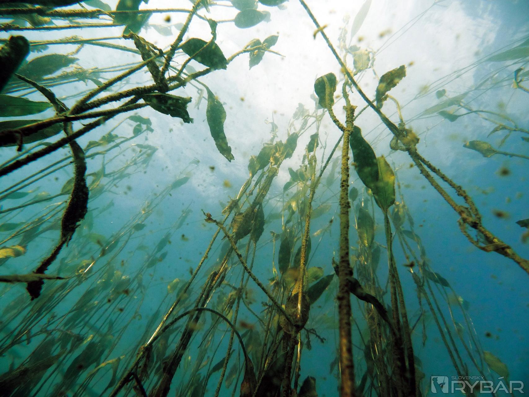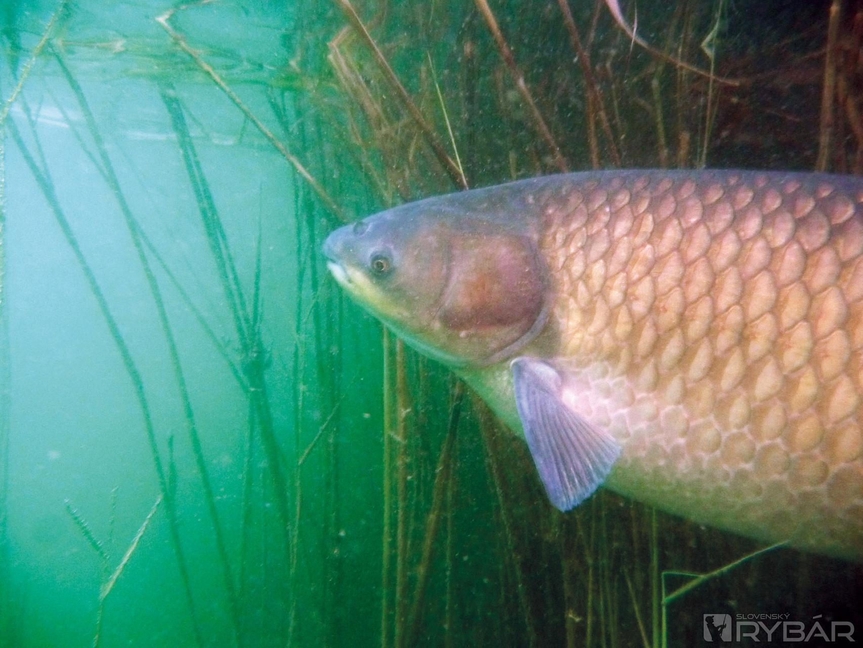 Práve hodovali nad hustým kobercom vodných tráv, keď sa mi podarilo priblížiť celkom blízko. Bolo to úžasné! Amur spravil doslova stojku na hlave, schmatol do papule trs vodných tráv a začal triasť hlavou do strán. Bolo to ako keď pes trhá handru, do ktorej sa zahryzol. Po vytrhnutí trávy sa dal amur do vodorovnej polohy a začal žrať.