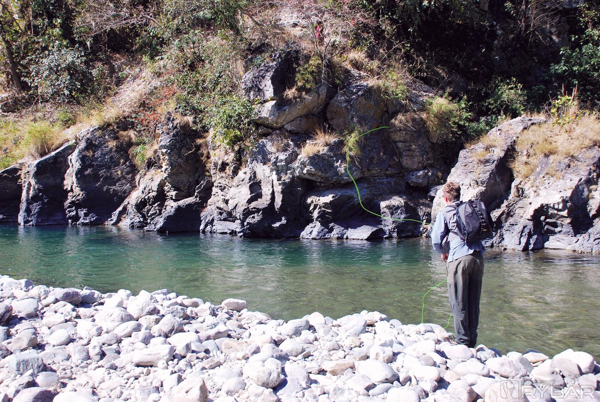 V prípade, že rybár zasekne rybu v tôni, ktorá je ohraničená plytkými bystrinami, môže hovoriť o šťastí, ak sa ryba rozhodne zostať v tôni. V opačnom prípade mu nezostane iné, než bežať rýchlo za rybou, pretože otočenie väčších exemplárov pri prvom výpade zvyčajne nepripadá do úvahy. Ryba rýchlo kľučkuje medzi balvanmi a okolo skál má spravidla dostatok možností pretrhnúť nadväzec. Výsledok súboja závisí „len“ od šikovnosti rybára, jeho fyzickej zdatnosti, kvalite vybavenia a dostatočnej dávke šťastia.
