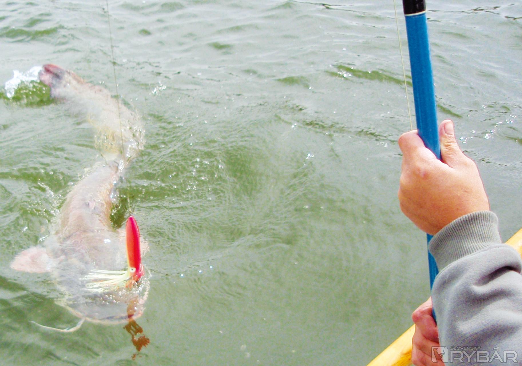 Dno tu klesá až do 4 metrov. Na sonare registrujem prvé odrazy. Dostávame sa blízko k stromu. Rzešek, ktorý má na udici aj plavák, sa zrazu zatvári divne. Plavák pomaly mizne pod hladinou. Kričím: „Máš záber, sekaj!“ Rzešek slabo pridvihuje prút. Ryba na druhom konci začína bojovať. Rzeškovi sa ju darí dostať tesne ku hladine. Prekvapený lovec začína pomaly navíjať. Plavák však doslova vystrelil z vody. Sumec sa vypína a mizne. Vysvetľujem svojmu poľskému priateľovi, že chytáme veľké ryby. Preto je potrebné sekať trocha ináč, ako je zvyknutý pri prívlači. Vidno, že je zo straty ryby smutný. Utešujem ho, že určite prídu ešte ďalšie sumce.