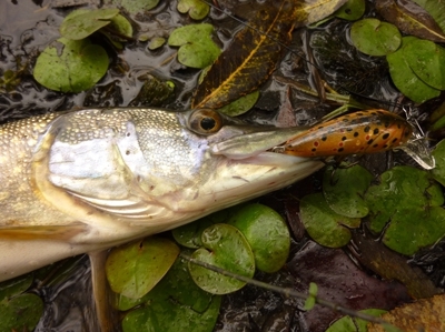 Po hodnej chvíli sa odhodlávam k samotnému lovu. Netrvá veľmi dlho. Snáď po každom druhom nahodení umelej nástrahy nasleduje záber a krátky súboj s dravcom. Veľkosť šťúk sa pohybuje okolo povolenej lovnej miery, niektoré jedince majú navrch. Občas menšiu nástrahu atakujú aj naježené ostrieže.