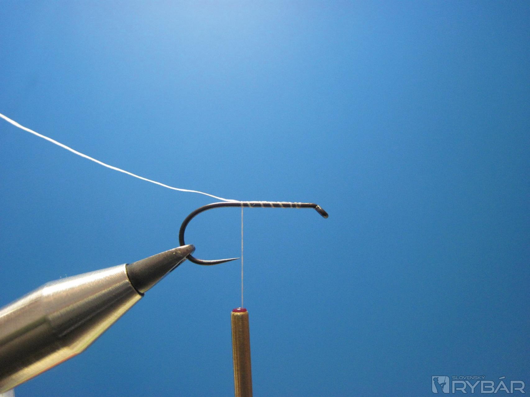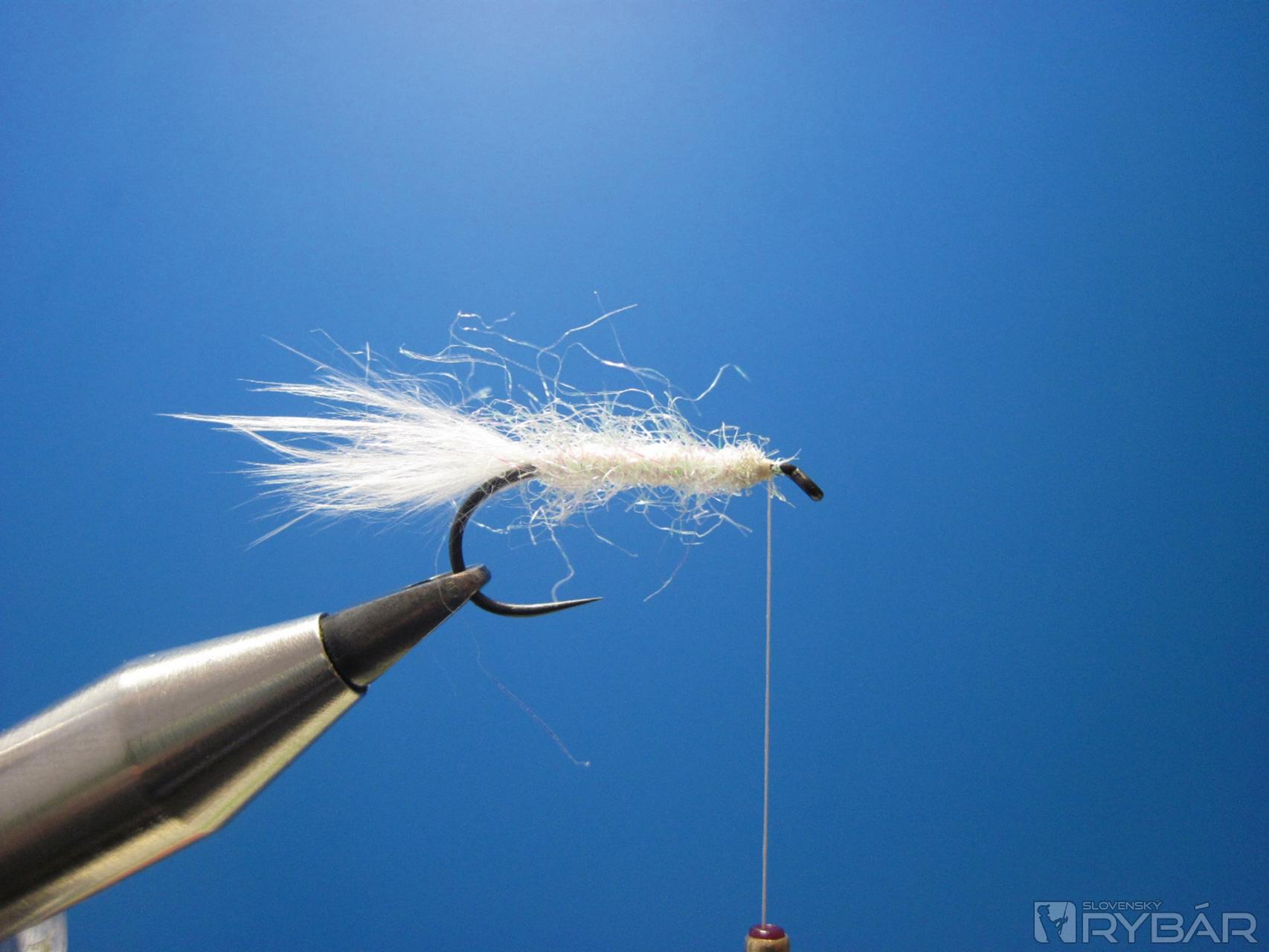 Dnes si ukážeme viazanie poterovej rybičky, ktorú budeme viazať na krátky háčik. Muška je viazaná z bieleho marabou peria, na telíčko použijeme lesklý perleťový dabing, ktorý pri viazaní pevne stiahneme a potom ho vyčešeme suchým zipsom.