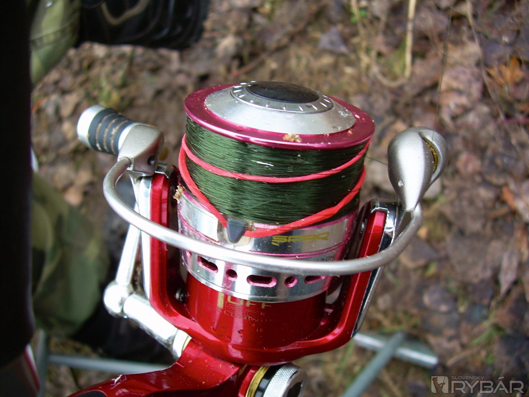 Inou, k vlascu o niečo šetrnejšou a aj pre menej skúsených feedristov použiteľnou možnosťou, je zafixovanie vlasca na cievke gumičkou. Postačí nám na to obyčajná gumička, aká sa používa hádam v každej domácnosti. Najprv ju upevníme do klipu na cievke a potom ju dva razy pretočíme cez cievku. Tým, že sme ju zaklipovali, získame pomerne pevne uchytenú gumičku, ktorá sa príliš nehýbe pri pohybe vlasca, čiže sa nevysúva pod vrchný lem cievky, kde svoju funkciu plní vo veľmi obmedzenej miere.