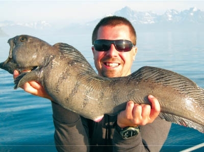 Na plavbu sa vydávame hneď po raňajkách, pripravení obísť miesta úspešné v uplynulom týždni. Začíname „Pod vodopádom“, kde sme v minulých dňoch ulovili celý rad „veľkých čiernych“, teda tresiek tmavých. Naše úsilie je odmenené - Dan dostáva metrové torpédo a vychutnáva si na prívlačový prút nádherný súboj, keď špička prúta opakovane zachádza pod hladinu a ryba ukazuje svoju silu. Nakoniec tresku zdoláva a po fotografovaní sa vracia naspäť do mora. Úspešní sme tu však všetci - Oto dostáva tiež krásnu černošku, ja niekoľko poriadnych obyčajných a Vláďa šperkuje výkon našej posádky: halibut 90 cm.