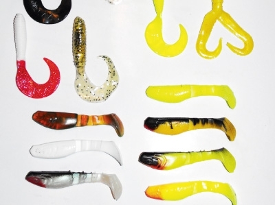 Patria k asi najviac používaným a zároveň aj k najlepším nástrahám na lov zubáča. Je ich veľmi veľa, preto si môžeme vybrať tú správnu, ktorá by zaujala nášho opálookého krásavca. Gumené nástrahy majú dve rôzne zakončenia a podľa toho sa aj rozdeľujú na TWISTRE a KOPYTÁ. Kopytá majú chvostík v tvare žehličky a twistre tenký dlhý chvostík zahnutý v tvare písmena C. Guma, z ktorej sú vyrobené nástrahy by mala byť mäkká a ohybná, lebo v opačnom prípade nástraha pri pohybe pod hladinou nepracuje, ,,nehýbe sa“. Nástraha musí v prvom rade zaujať dravca pohybom a neskôr aj farbou. V zimných mesiacoch nie je na zahodenie ak by ste mäkké gumy prevarili v horúcej vode nejakých 3-5 min., aby boli ešte ohybnejšie a v studenej vode by lepšie pracovali. Mne sa to osvedčilo. Dôležitý význam pri výbere nástrahy venujem aj jej farbe, aj keď sa vraví, že ryby nerozoznávajú farby, nebol by som si tým taký celkom istý, lebo už sa mi potvrdilo, že zubáč reaguje aj na farbu. Avšak podstatné je vydráždiť rybu pohybom nástrahy a až potom, keď prenasleduje nástrahu, tak rozhoduje aj farba nástrahy. No farba nerozhoduje pri veľkých hĺbkach, lebo tam už asi ťažko rozozná ryba nejakú farbu. Farbu nástrahy si pri príchode k vode vyberám podľa obdobia v akom chytám a zároveň aj od stavu vody a jej zakalenia. Do čistej vody používam svetlé farby alebo prírodné a, naopak, do kalnej vody skôr použijem reflexné alebo výrazné sfarbenie nástrahy. V čistej vode sa mi veľmi osvedčili farby ako je biela, čierna, perleťová, alebo imitácie plotičky alebo belice. Do kalnej vody sú dobré farby reflexná zelená, žltá, oranžová a červená.