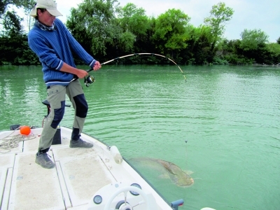 V člne so mnou sedí Atti, celý ubolený od včerajšieho celodenného sedenia v člne. Aj tá mierna nepríjemnosť s vlnou výletnej lode mu zobrala chuť na rybačku. Veď to spraví prvý záber, hovorím si v duchu. Vyrážam preto k najväčšej jame, ktorú poznám. Tu sa rieka otáča v 90-stupňovom uhle a vymyté dno je v úctyhodnej hĺbke 19 metrov. Skrývajú sa tu naozaj prekrásne fúzaté jedince. Dennodenne počúvam o obrovských exemplároch, ktoré tu boli ulovené. Ja si na ne brúsim háčik už pekne dlho a stále sa mi nepodarilo uloviť tu nič rekordné.