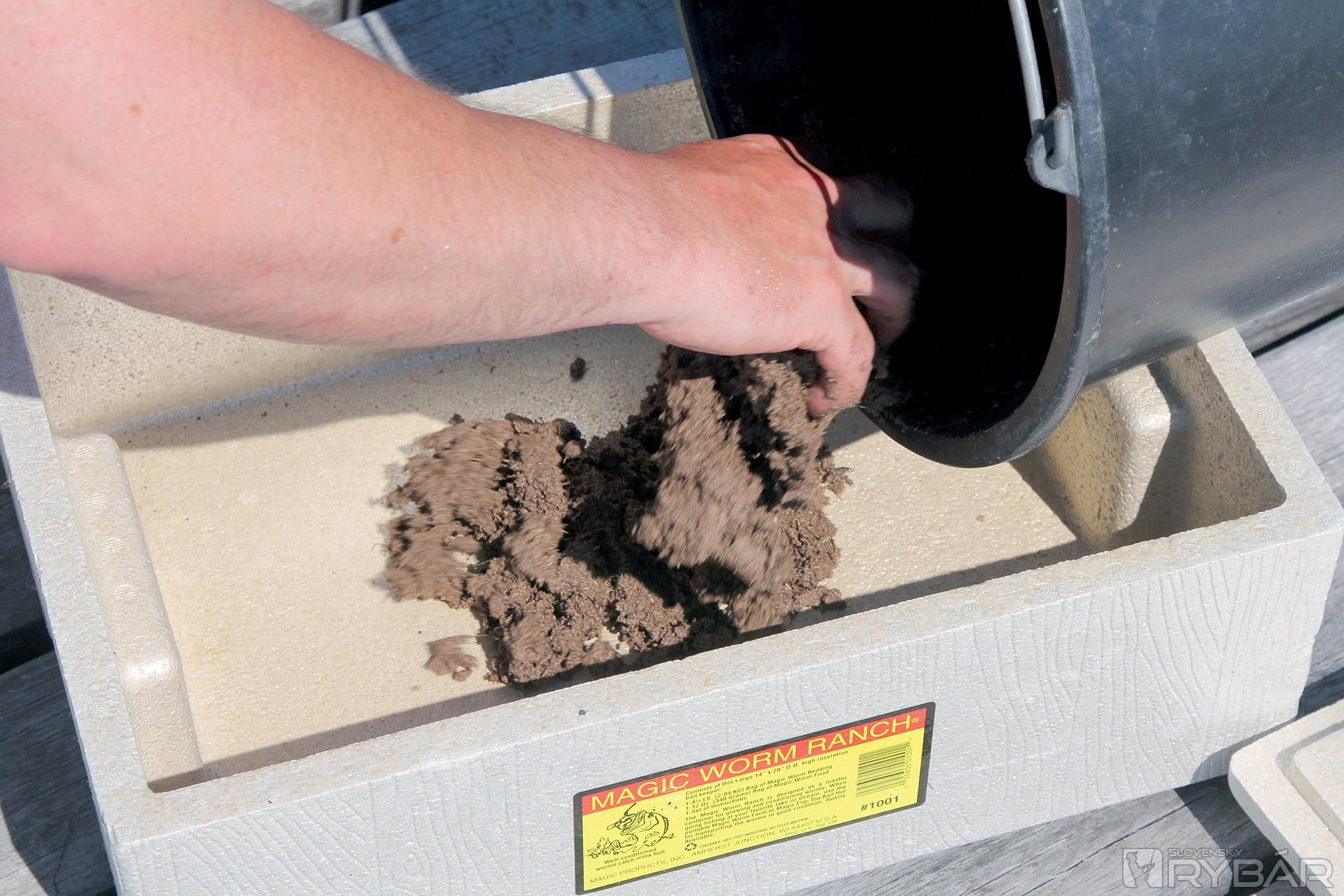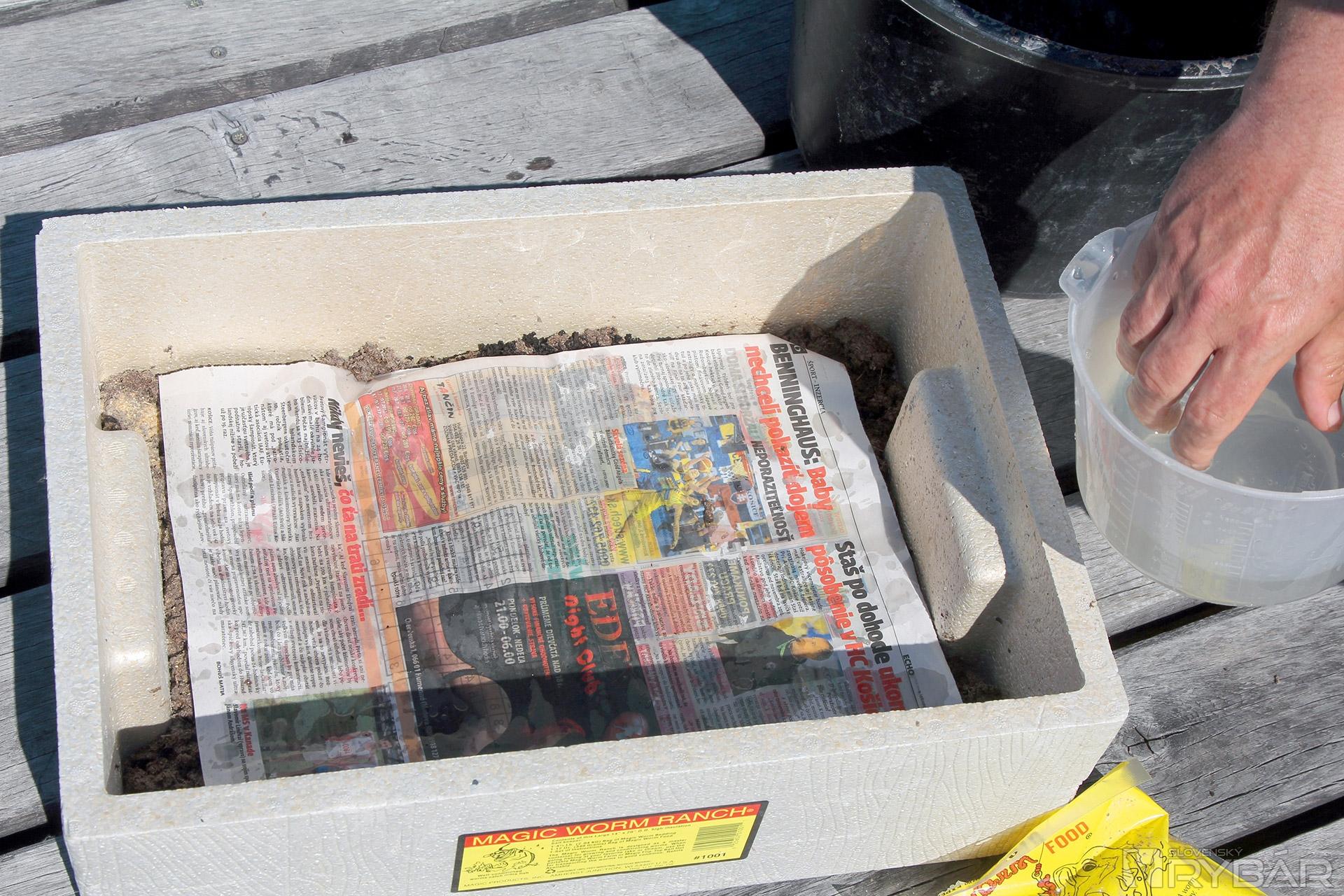 Na takto pripravenú podstielku nasypte 3 mm vrstvu potravy pre červy (MAGIC WORM FOOD). Následne môžete vložiť červy. Na vrch podstielky vložte zložené noviny, ktoré jemne pokropte vodou. Stanicu uzavrite krytom. Potravu pre červy dopĺňajte okamžite po jej spotrebovaní. Treba si uvedomiť, že červ denne spotrebuje množstvo potravy, ktoré sa rovná jeho hmotnosti.