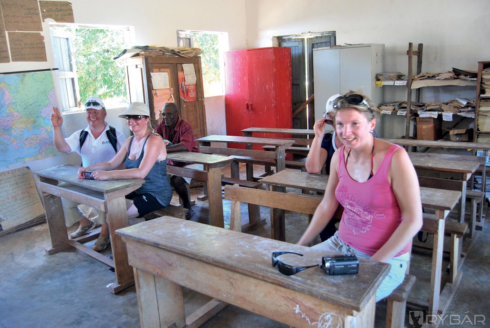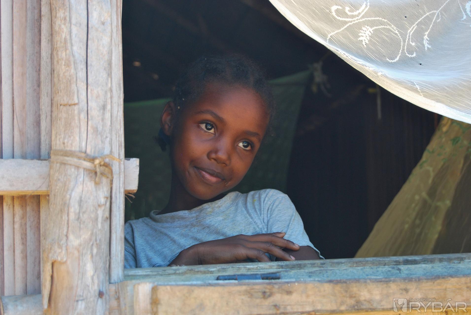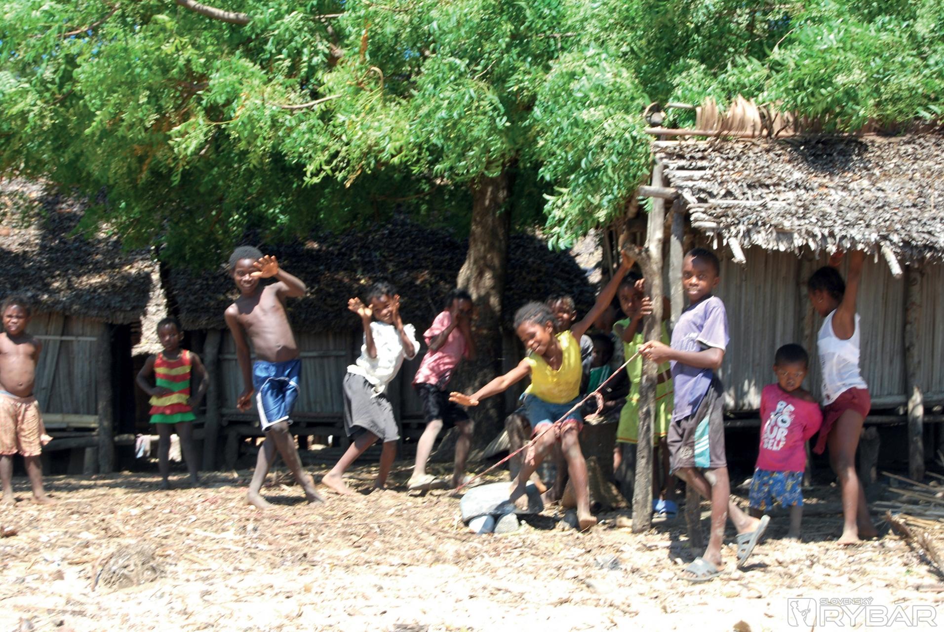 Prechádzame okrajom mangrového porastu, kde sa musíme vyzuť aby sme mohli pokračovať po plytkom zálive, ktorý je priechodný iba pri odlive. Čľapkajúc bosými nohami ženieme pred sebou kraby a v diaľke na pobreží sú vidieť prvé domorodé príbytky. Z chatrčí ukrytých pod stromami vychádzajú deti. Smejú sa a čakajú nás ukryté v tieni. Tu sme hostia, preto veľmi opatrne vyťahujem foťák a s úsmevom naznačujem čo chcem robiť. Pravdepodobne mám viac odvahy ako slušnosti, a tak fotím a fotím. Nikto sa neodvracia a dokonca mi niektorí malí nezbedníci aj pózujú. Cez maličkú dedinku prechádzame veľmi rýchlo a pokračujeme do hôr. Po hodine cesty sa nám ukázala jedinú murovaná budova v širokom okolí. Je to miestna škola postavená za peniaze organizácie Unicef. Triedy sú prázdne, tabuľa popísaná násobilkou a pred dverami stojí neoholený a ufúľaný riaditeľ Fransoá, ktorý nás víta až veľmi prehnanou radosťou. Stále dookola melie tú istú vetu a podľa jeho nie celkom koordinovaných pohybov neskôr konštatujeme, že okrem pedagóga je určite aj hlavným technológom - ochutnávačom výrobne liehu, ktorú sme našli ukrytú v pralese.