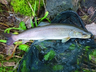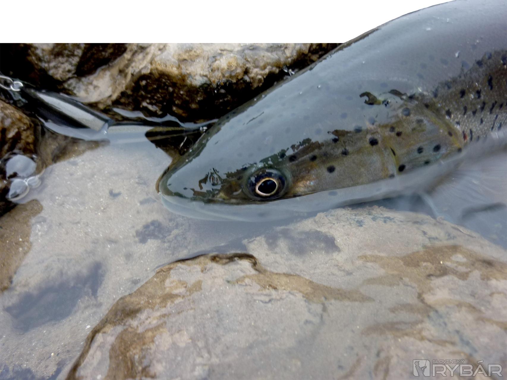 Prechytávam nádejné miesta už viac ako hodinu, no záber stále neprichádza. Veď čo by som aj chcel – nemám šťastie, ako vždy! Posúvam sa po toku a Roman vedno so mnou. Ochotne vláči veľký rozovretý podberák. Prichádzam k nádejnému miestu, ktorým je klasický „točák“ za veľkým balvanom. Nahadzujem veľký vobler vo farbe RT zaň a navíjam. Miesto je ako stvorené pre veľkého „dúhaka“, ktorého tam predpokladám.