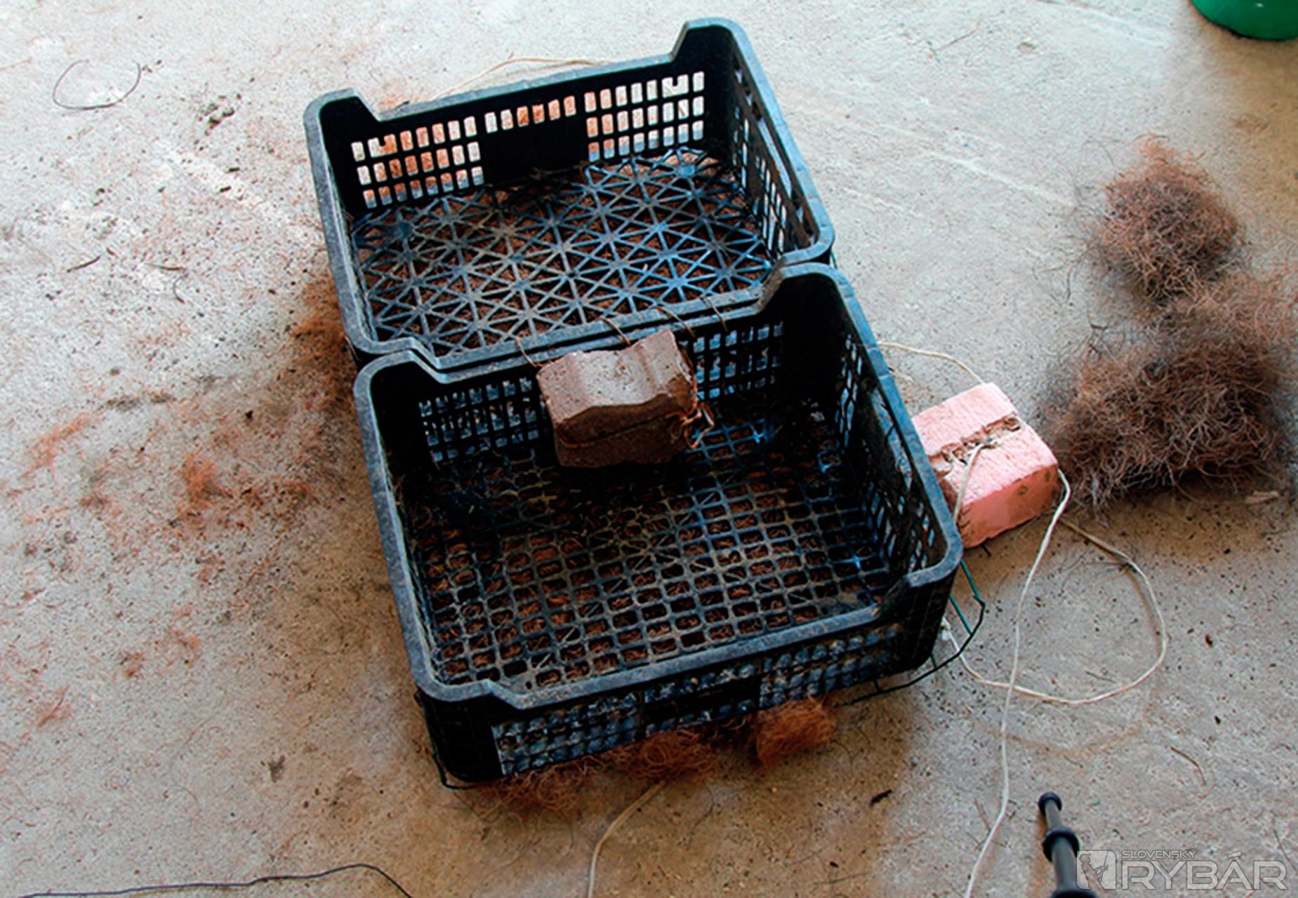 1. Ak nemáte veľkú prepravku, môžete drôtom spojiť dve malé. Uviažeme 3,5 m šnúru a na koniec fixujeme kocku styroduru alebo polystyrénu.